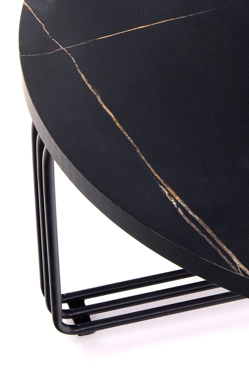 Stolík s čiernym mramorovým dizajnom a čiernym oceľovým rámom. .. viac