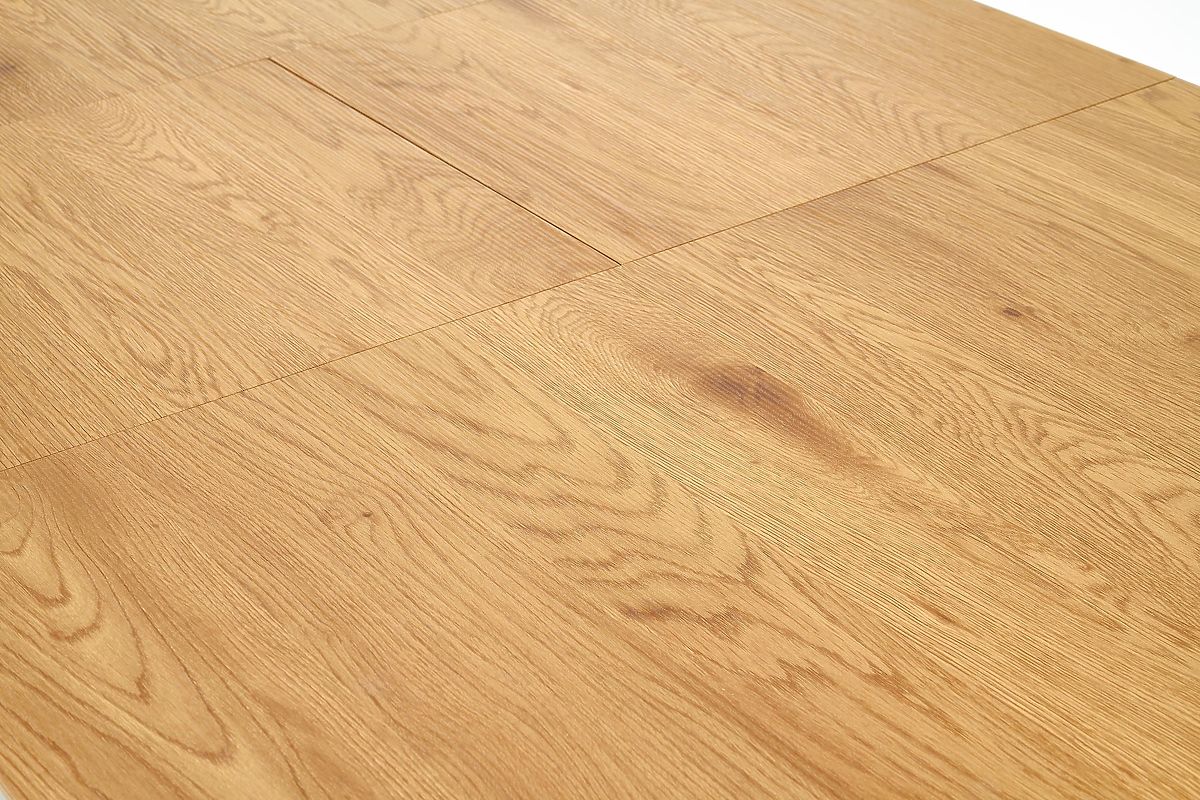 Rozkladací stôl so zlatým dubovým povrchom a čiernymi nohami. .. viac