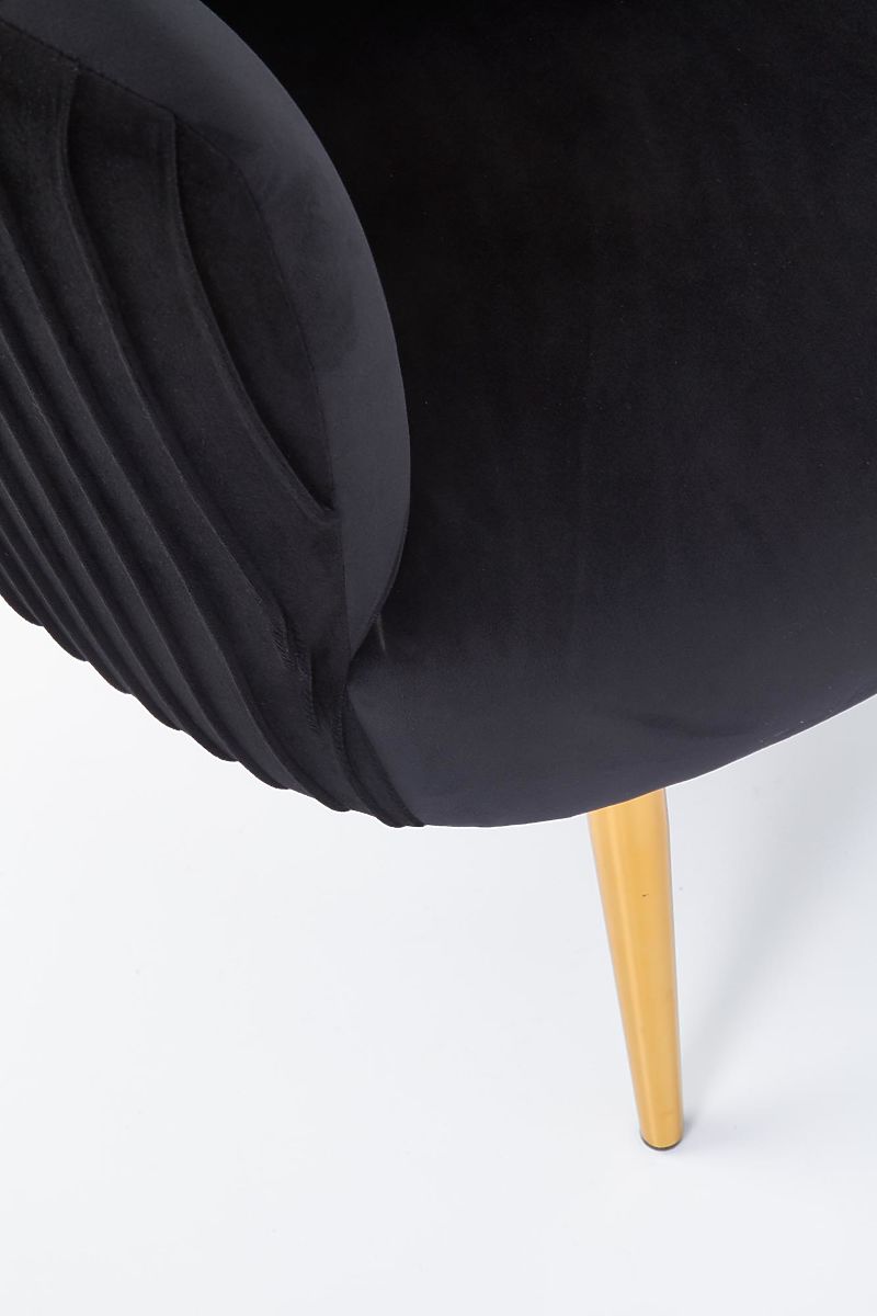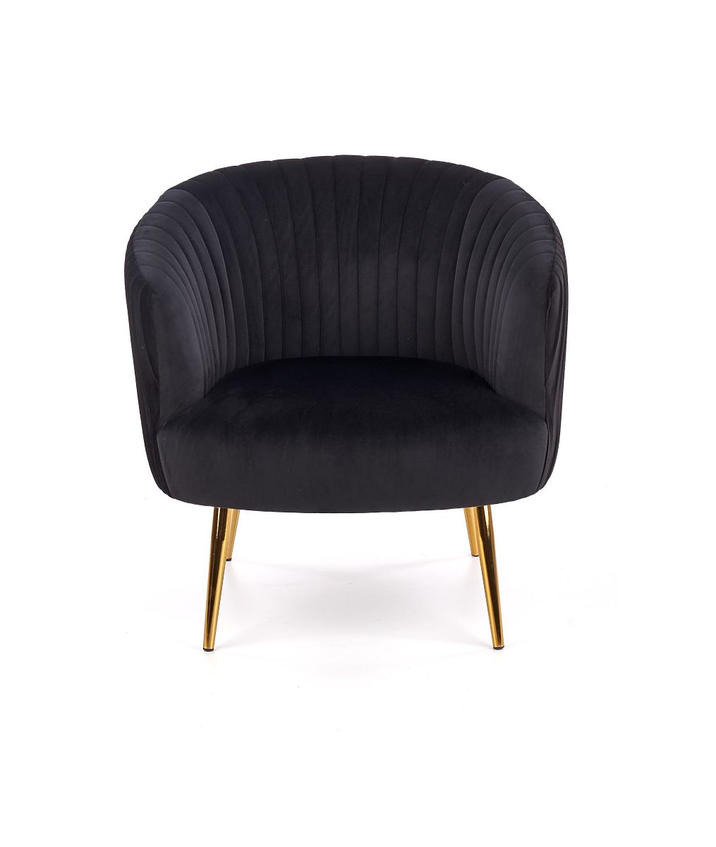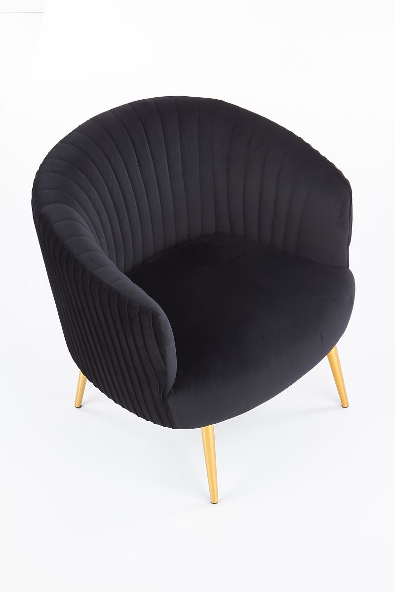 Relaxačné kreslo s čiernym čalúnením a zlatými nohami. .. viac