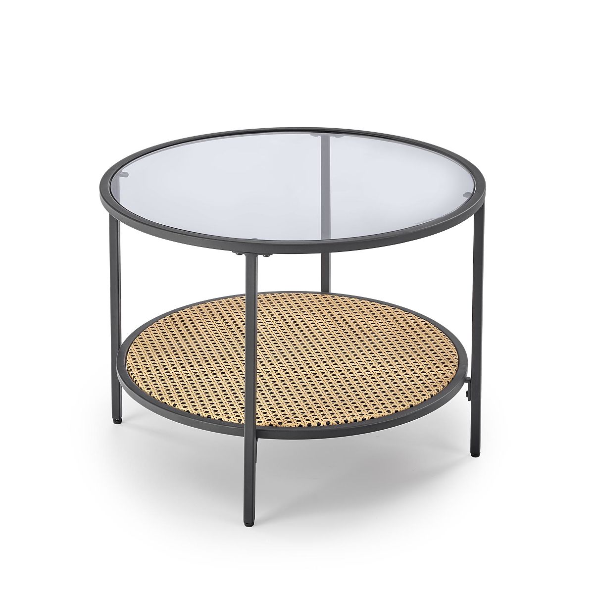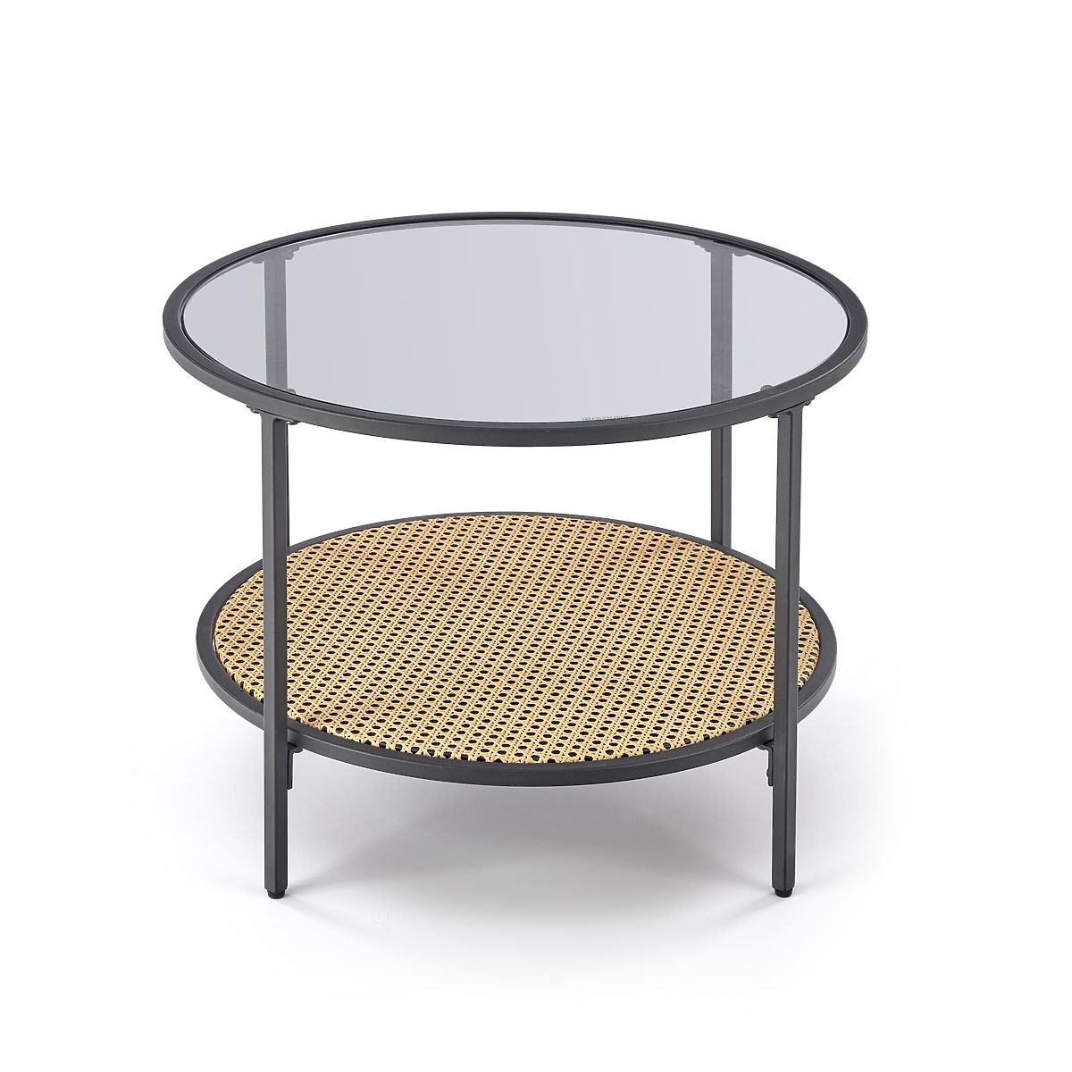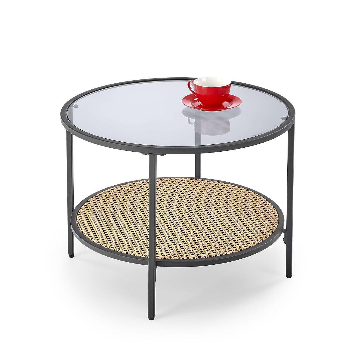 Konferenčný stolík z dymového skla a prírodného ratanu. .. viac