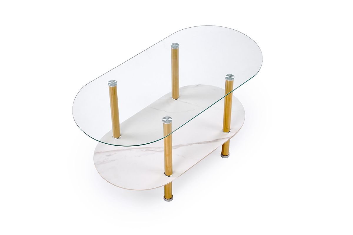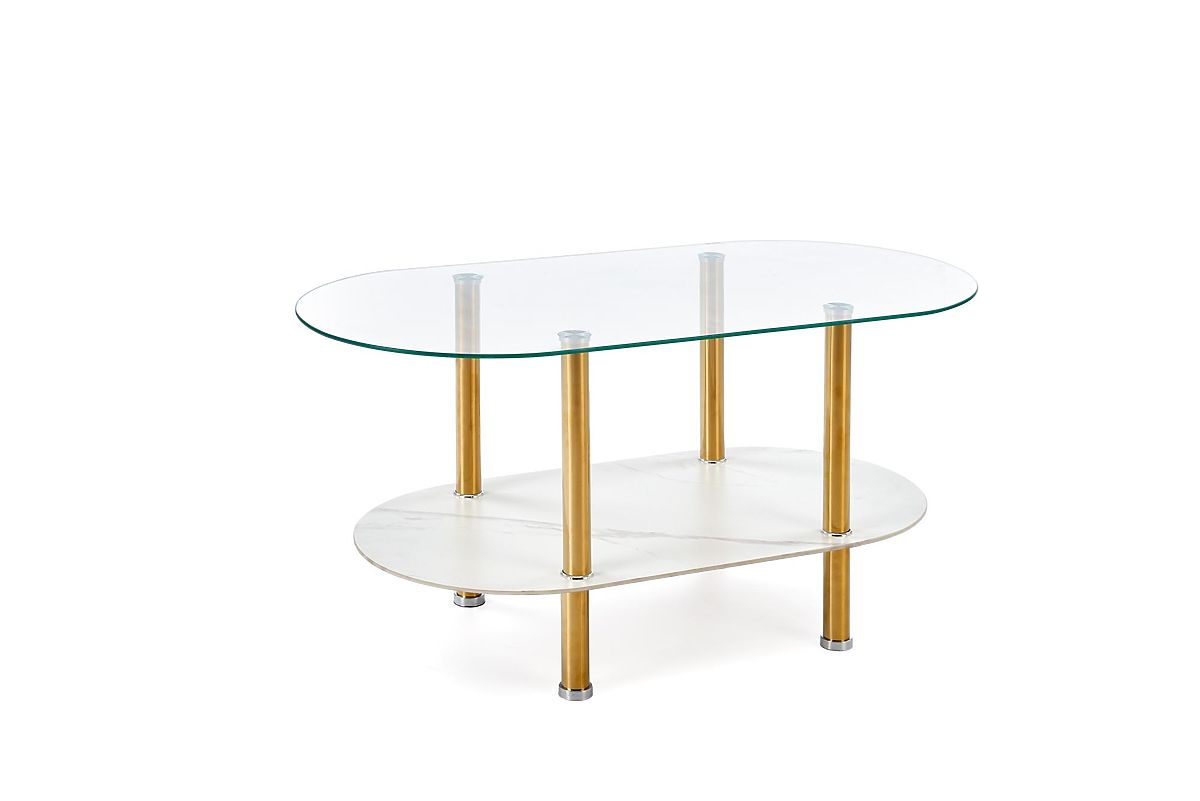 Lukafurniture.sk » Do domu / Obývacia izba / Konferenčný stolíky / DUCAT konferenčný stolík, biely mramor / transparentný / zlatý (2p=1ks)