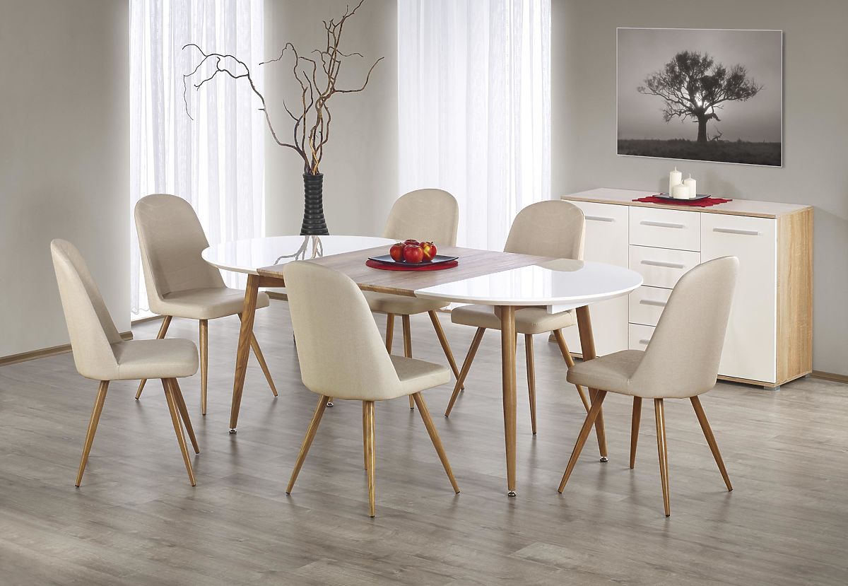 Lukafurniture.sk » Do domu / Jedáleň a kuchyň / Jedálenský stoly / EDWARD rozkladací stôl medový dub / biela; nohy: medový dub (2p=1ks)