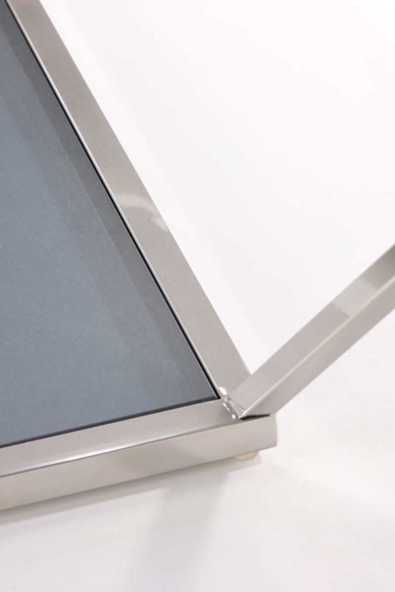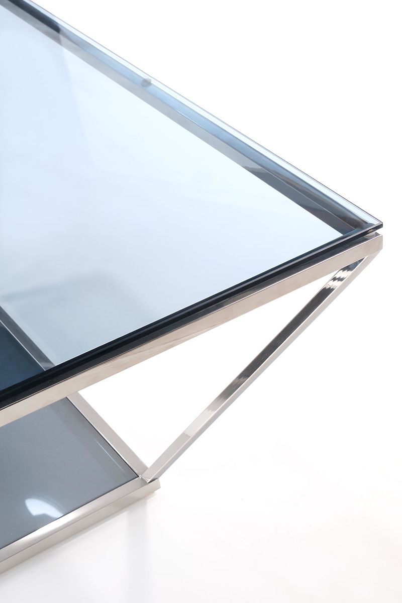 Konferenčný stolík z dymového skla a nehrdzavejúcej ocele. .. viac