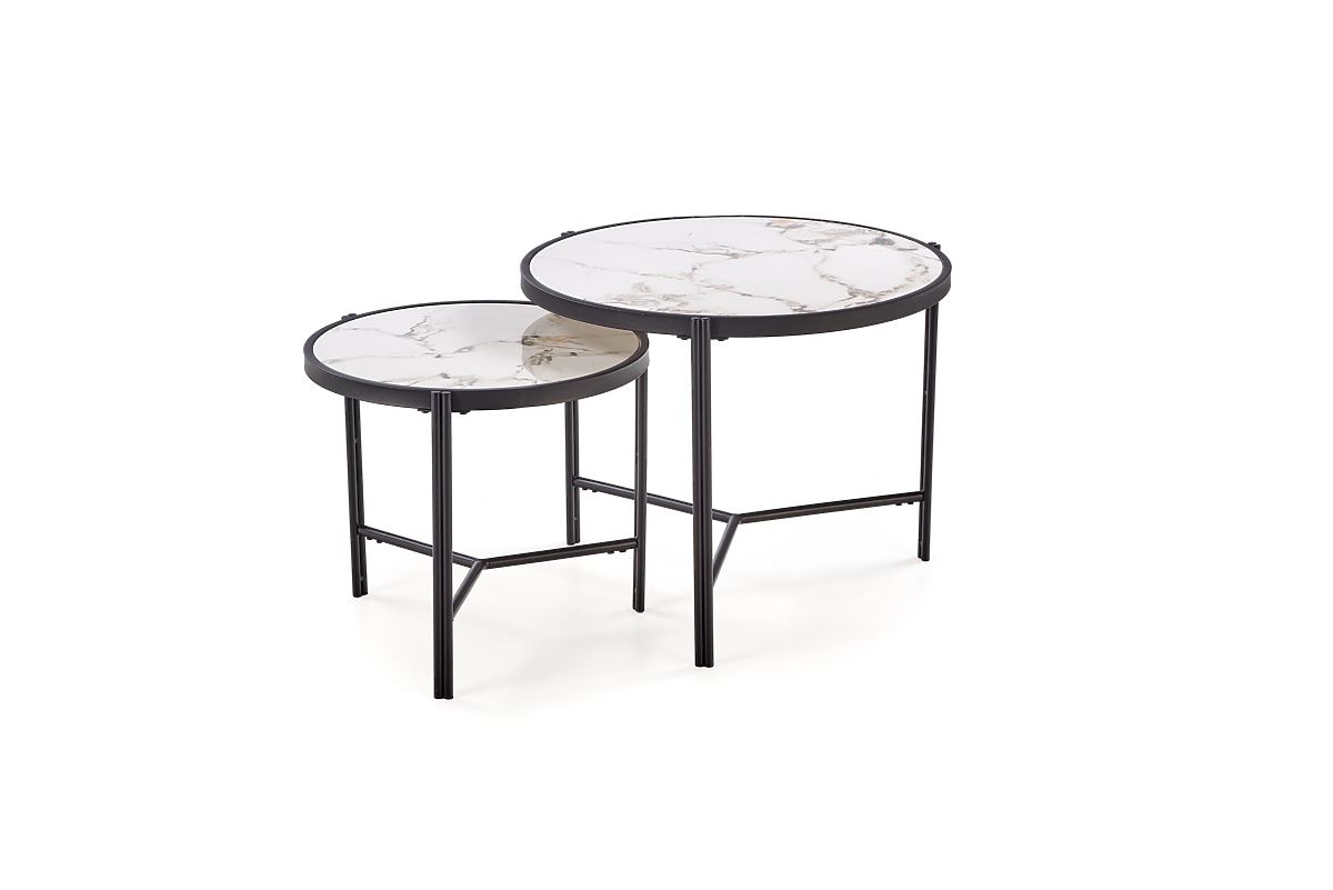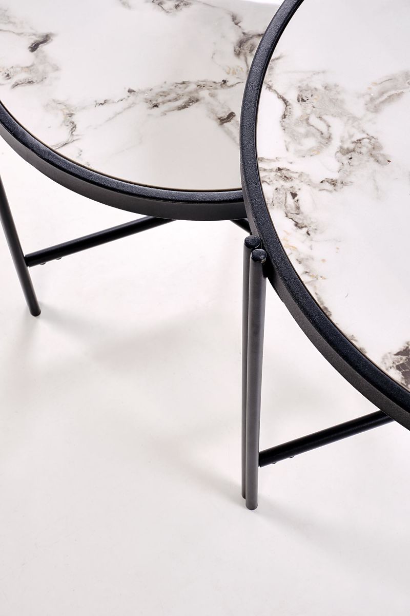 Lukafurniture.sk » Do domu / Obývacia izba / Konferenčný stolíky / FATIMA sada 2 lavíc, biely mramor / čierna (1p=1ks)