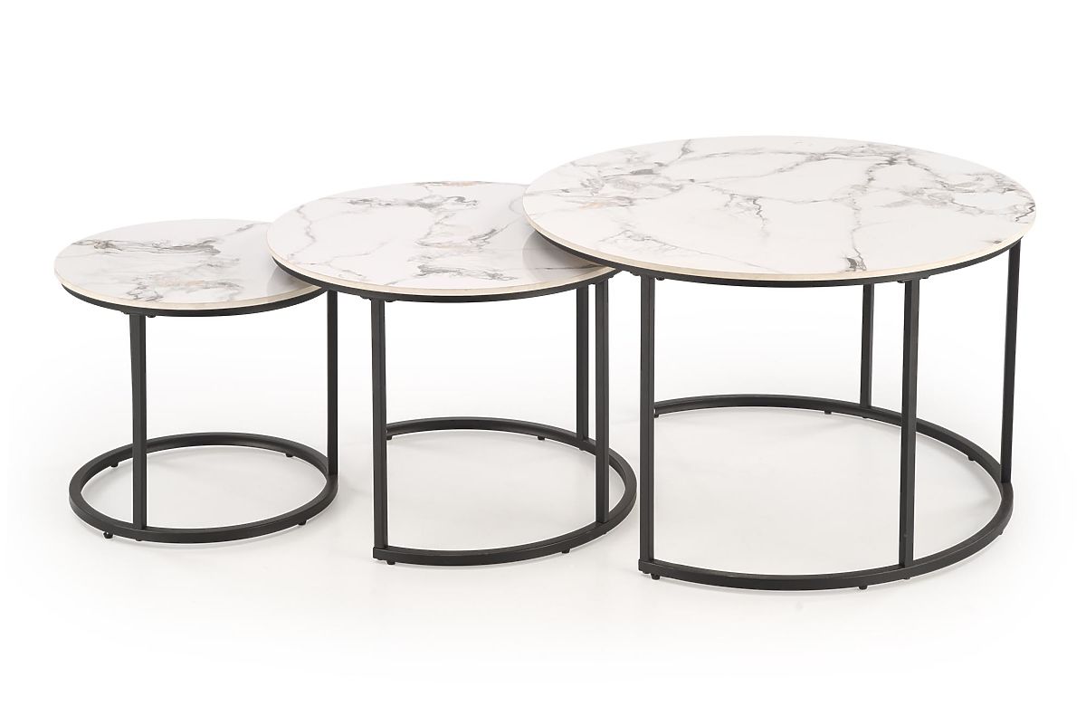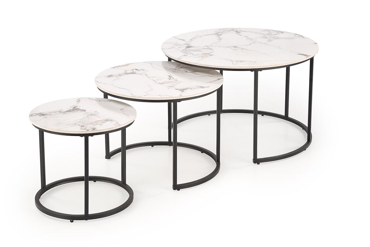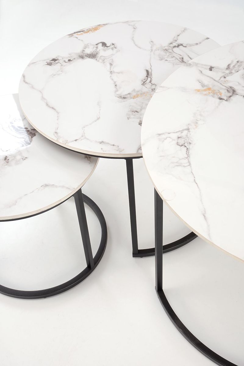 Lukafurniture.sk » Do domu / Obývacia izba / Konferenčný stolíky / GILDA sada 3 stolíkov, biely mramor / čierna (1p=1set)