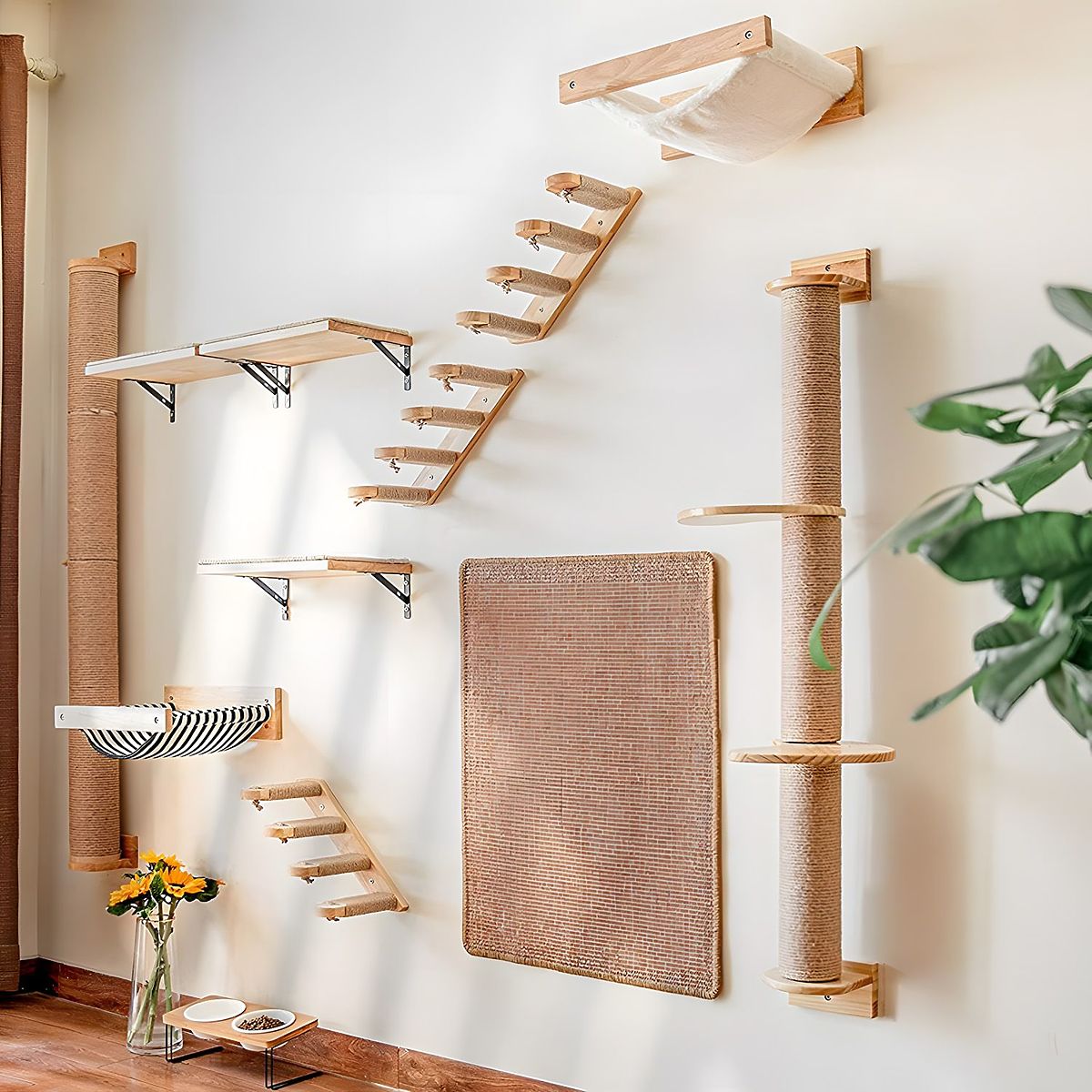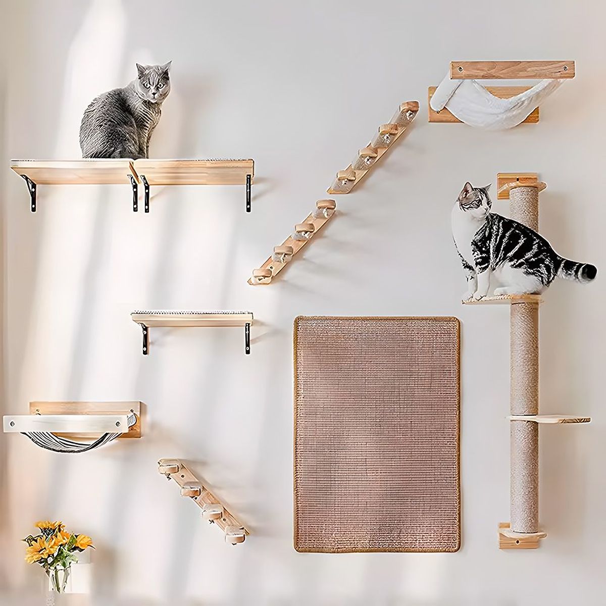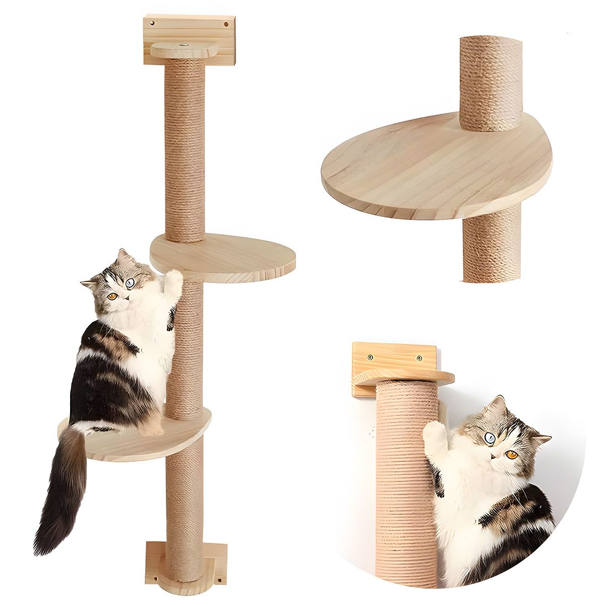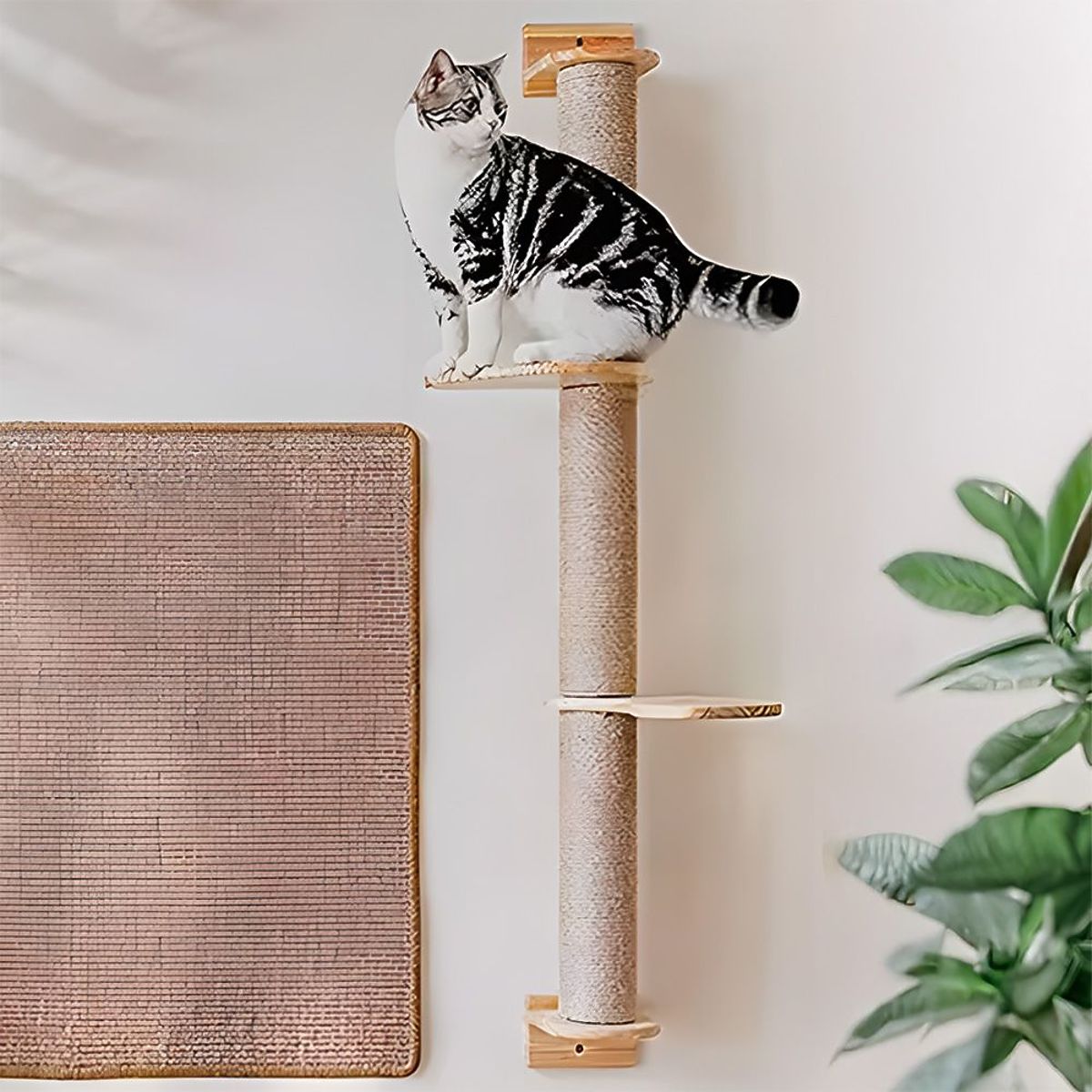 Doprajte svojej mačke ideálne miesto na lezenie, škrabanie a pozorovanie okolia! Naše nástenné škrabadlo je praktické a štýlové riešenie, ktoré sa skvele hodí do každého interiéru – nezaberá miesto na podlahe a zároveň ponúka vášmu miláčikovi množstvo atrakcií. Škrabadlo pripevnené k stene je vybavené pevným stĺpikom obaleným sisalom, ktorý je ideálnym miestom na škrabanie. Dve stabilné drevené police umožňujú mačke lezenie a odpočinok na rôznych úrovniach. Je to ideálne riešenie pre aktívne a zvedavé mačky.