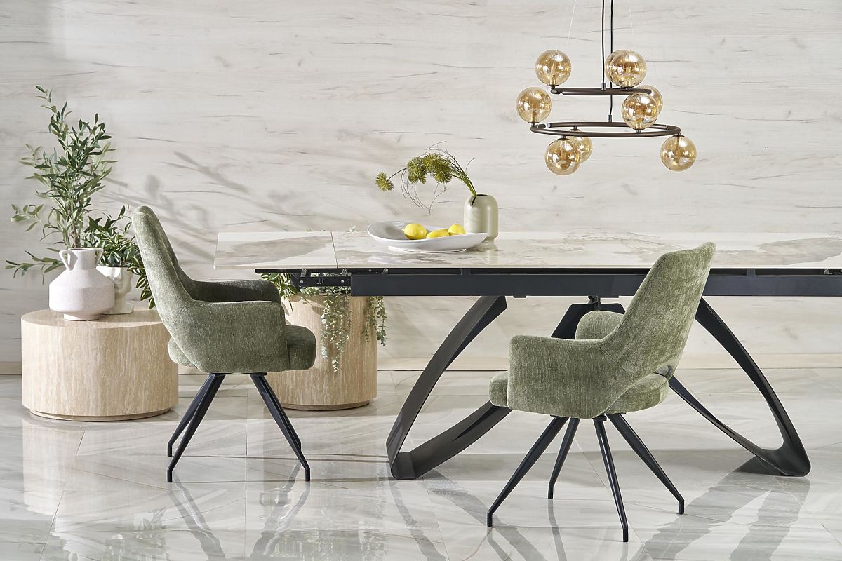 Lukafurniture.sk » Jedáleň a kuchyne / Jedálenský stoly / HILARIO rozkladací stôl, doska - biely mramor, nohy - čierne (3p=1ks)