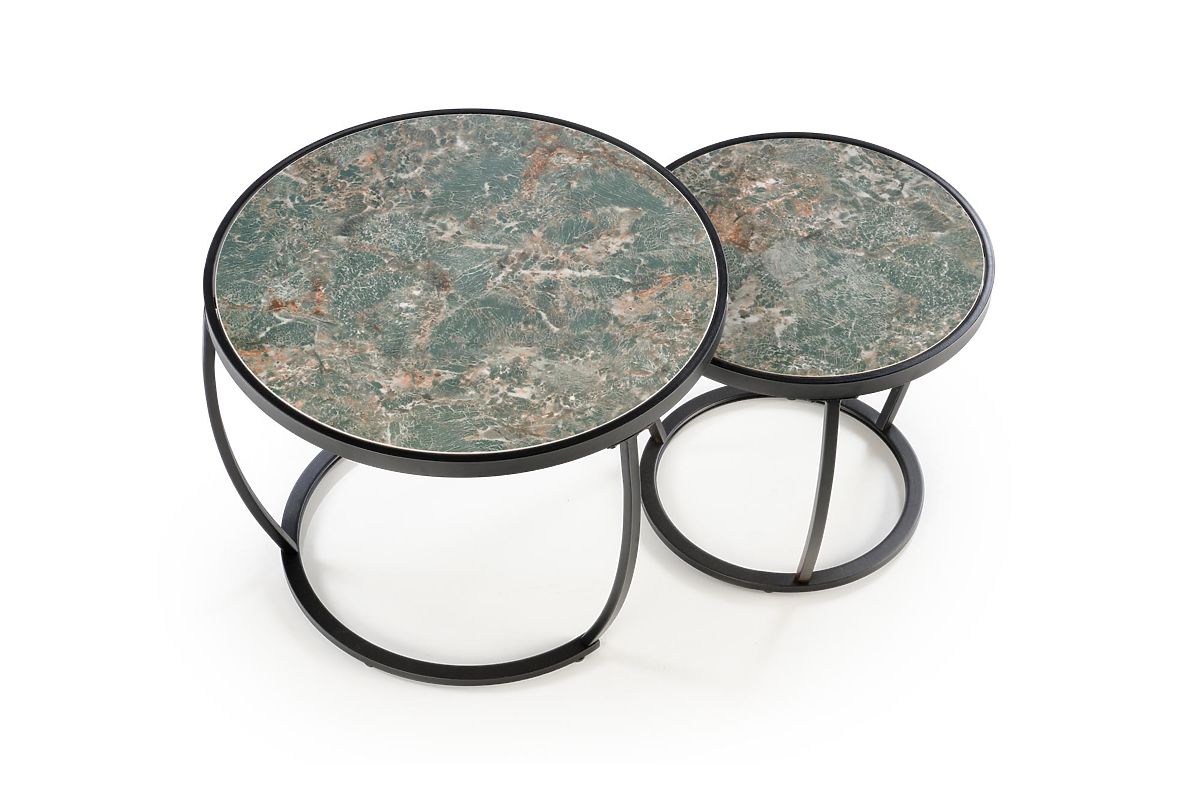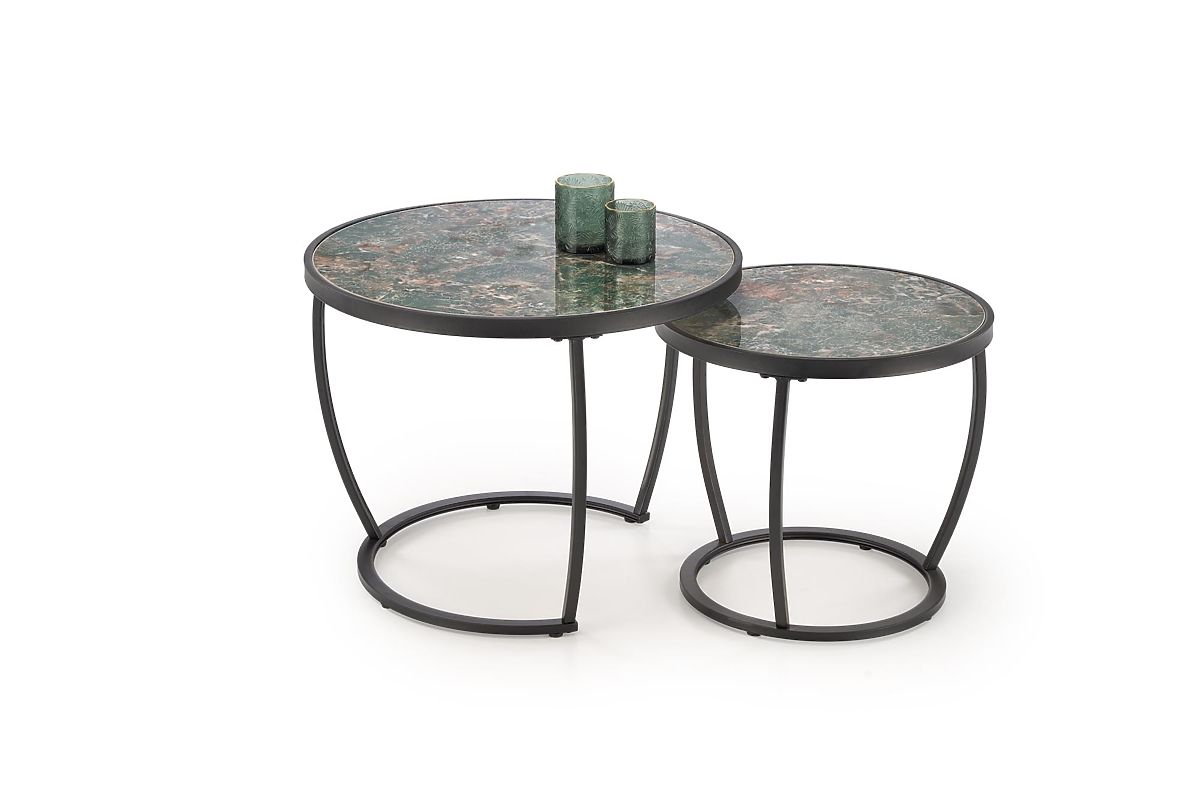Lukahome.sk » Stoly a stolíky / Konferenčný stolíky / INES sada 2 stolíkov, zelený mramor / čierna (1p=1set)