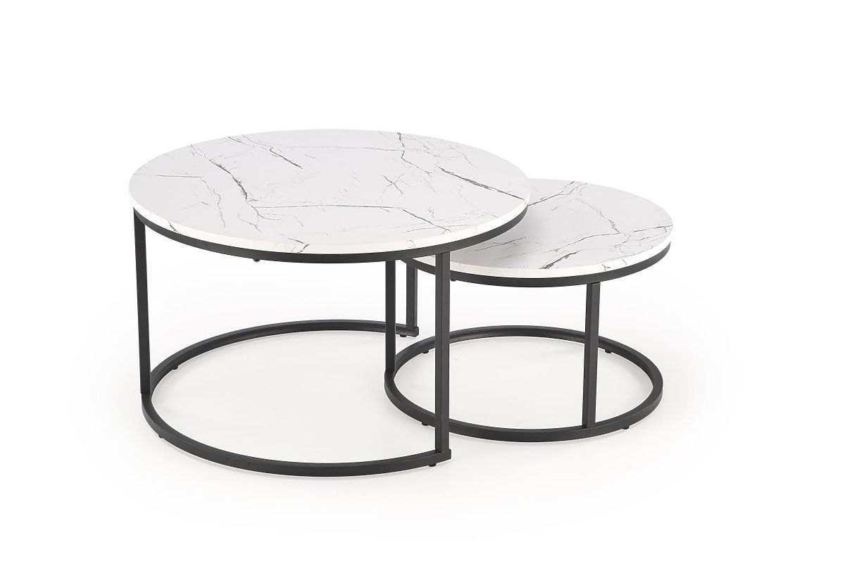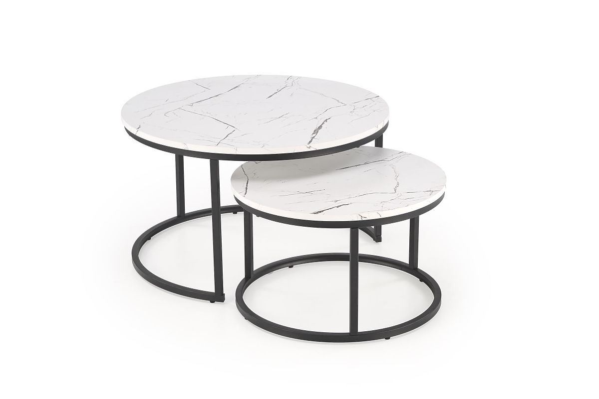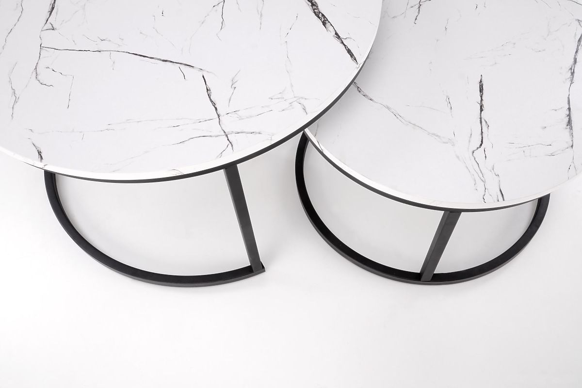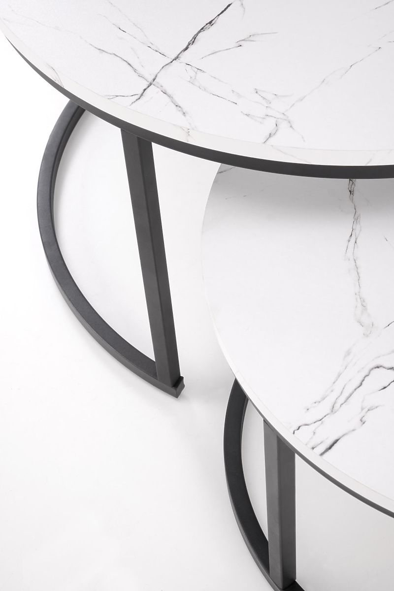 Lukahome.sk » Stoly a stolíky / Konferenčné stolíky / JAVA sada 2 stolíkov, biely mramor / čierna (1p=1ks)