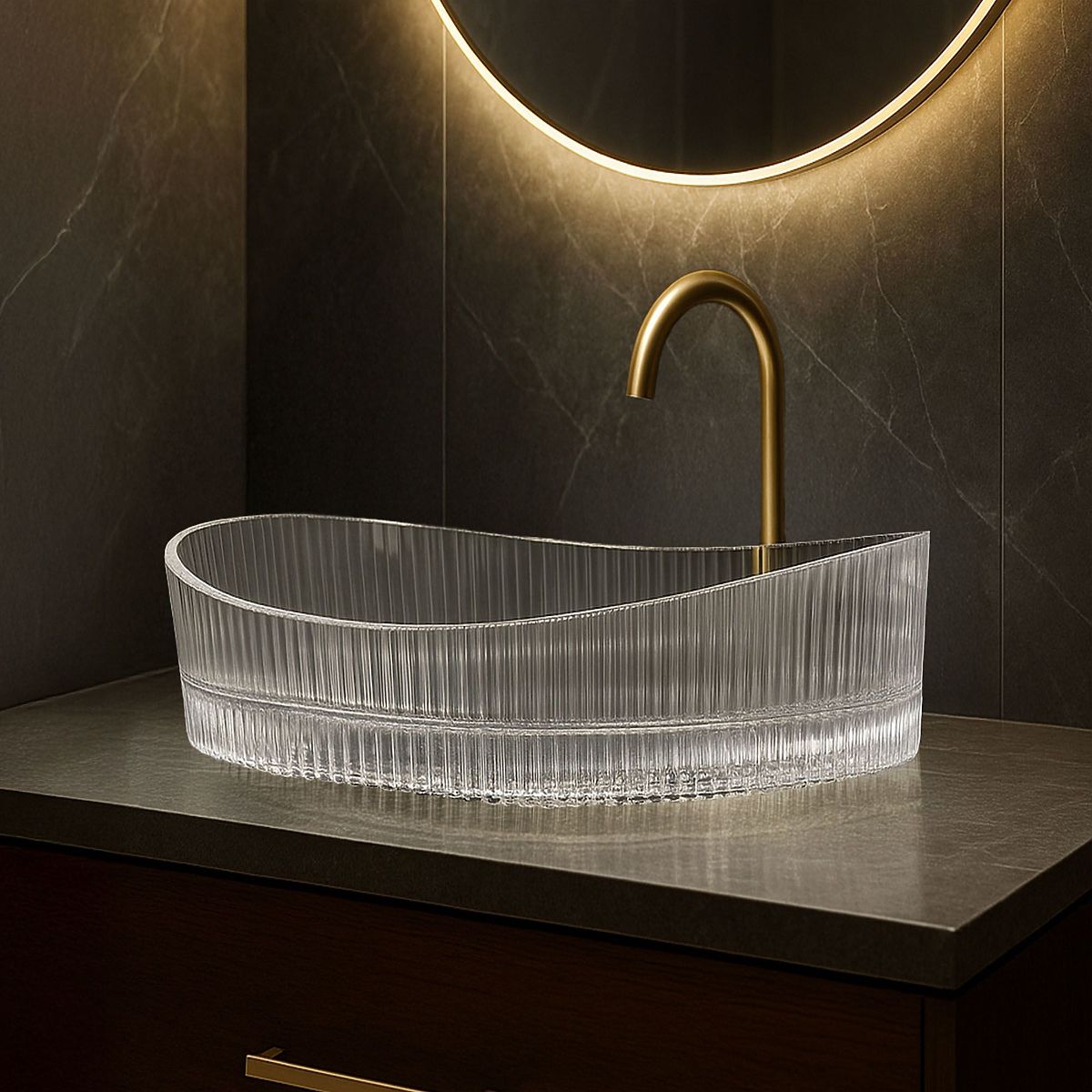 Model Harper spája estetiku s funkčnosťou – pevné sklo je odolné voči každodennému používaniu a hladký povrch vo vnútri misy uľahčuje udržiavanie čistoty. Je prispôsobené na montáž na dosku alebo skrinku, čo poskytuje plnú slobodu v usporiadaní. Jeho moderný dizajn sa dokonale hodí k armatúram v zlatých, čiernych alebo chrómových odtieňoch, čo umožňuje vytvoriť jednotný a efektný priestor.
