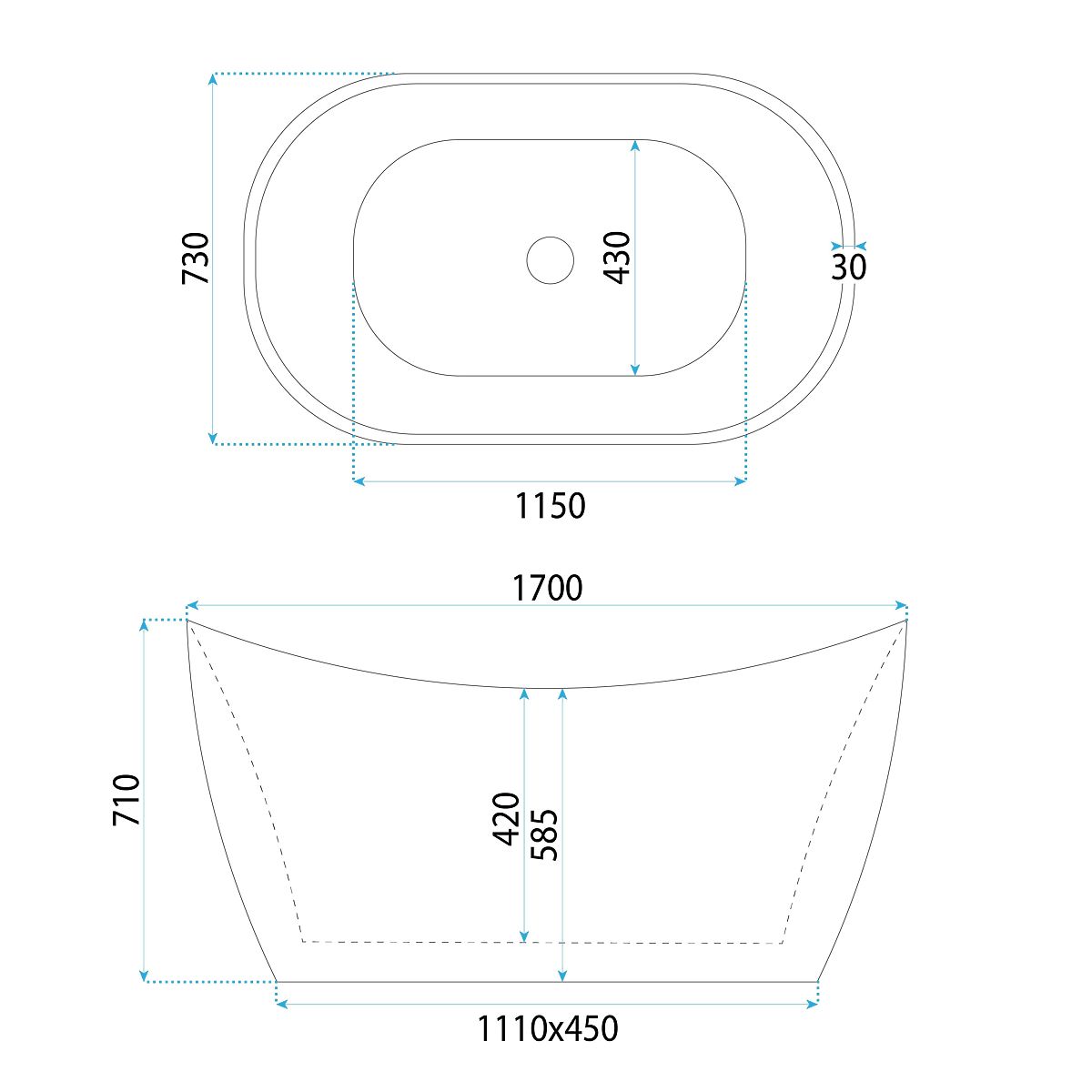 Voľne stojaca akrylátová vaňa ATENA 170