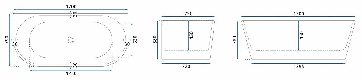 Akrylátová prístenná vaňa OLIMPIA 170 cm