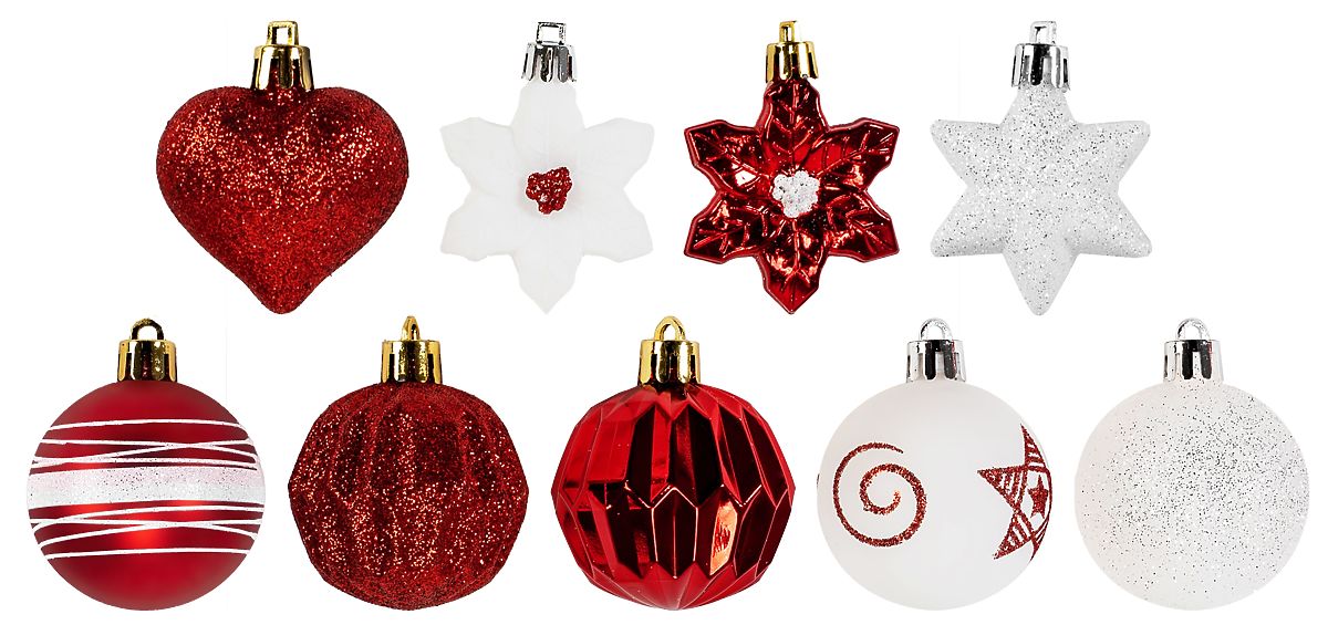 Predstavujeme vám sadu vianočných ozdôb z plastu s rôznorodým povrchom, vďaka čomu obohatia vzhľad vianočného stromčeka. Ozdoby vyzerajú skvele na stromčeku a sú odolné proti rozbitiu, čo vám umožní stráviť sviatky pokojne bez obáv o vianočnú dekoráciu. Vytvorte atmosféru kúzla Vianoc pre všetkých.