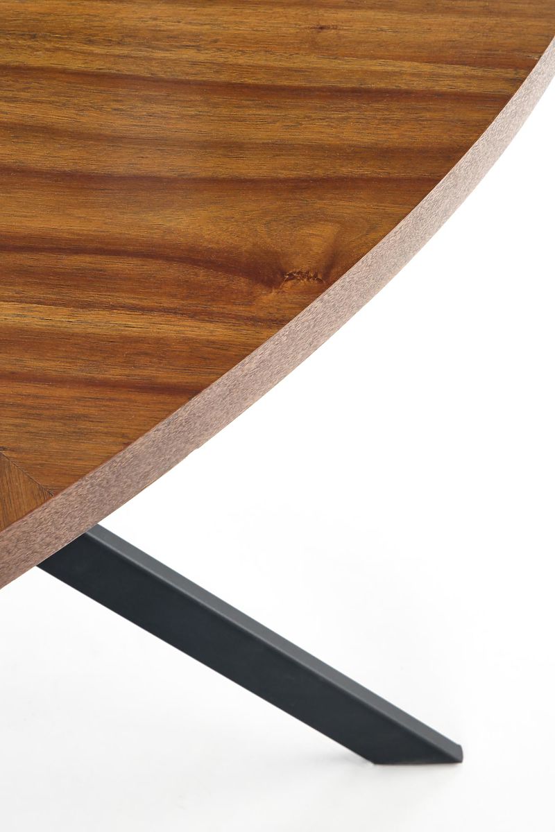 Stôl s orechovou doskou a čiernymi nohami z MDF a ocele. .. viac