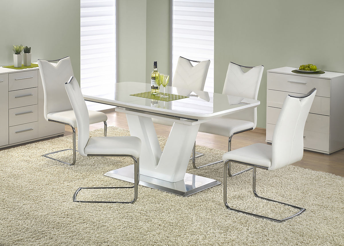 Neutrálna, elegantná biela farba a moderný tvar umožňujú jednoduché zladenie s jedálenskými stoličkami z našej ponuky a doplnia každý interiér. Rozkladací mechanizmus stola umožňuje predĺženie, takže pohodlne pojme viac hostí.