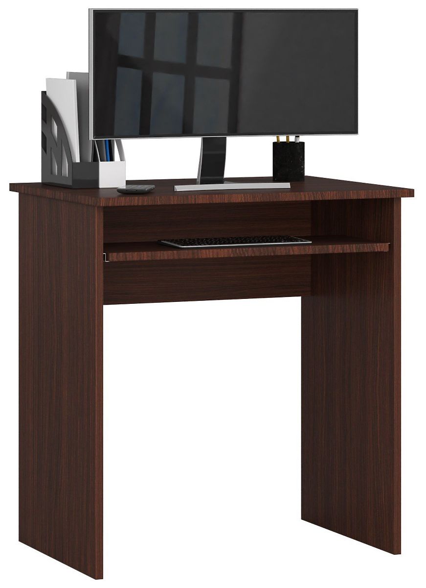 Voľne stojaci písací stôl pre notebook STAR je navrhnutý vo farbe wenge. Perfektne sa hodí do klasických aj moderných interiérov, kde je potrebné vytvoriť pracovný kútik. Stôl sa vyznačuje malými rozmermi, vďaka čomu môže byť úspešne použitý aj v malých priestoroch. Okrem pracovnej dosky má výsuvnú poličku na klávesnicu. Nábytok je vyrobený z laminovanej dosky s hrúbkou 16 milimetrov. Produkt je odolný a odolný proti poškodeniu, takže môže byť umiestnený nielen v domácej kancelárii alebo izbe tínedžera, ale aj v miestnosti s vyššou frekvenciou pohybu, napríklad v kancelárii. Náš internetový obchod je miestom, kde zákazníci môžu počítať so širokým výberom nábytku za konkurencieschopné ceny. Dúfame, že prezentovaný písací stôl splní všetky očakávania a umožní vytvorenie pohodlného kútika pre štúdium alebo prácu na počítači. Pozývame vás na nákup.
