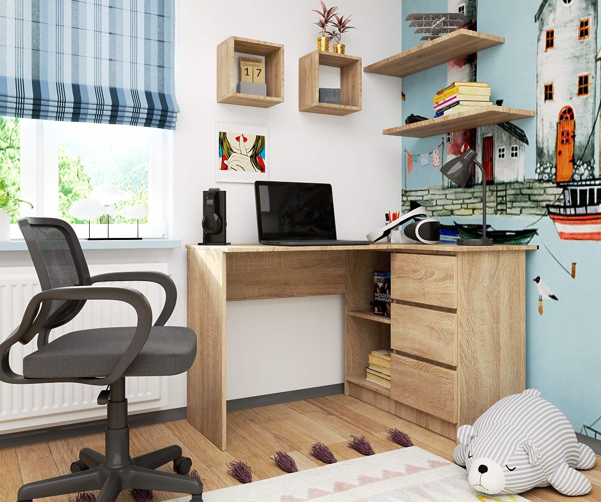 Predstavovaný model je: Rohový písací stôl 3 zásuvky B16 pravý dub sonoma