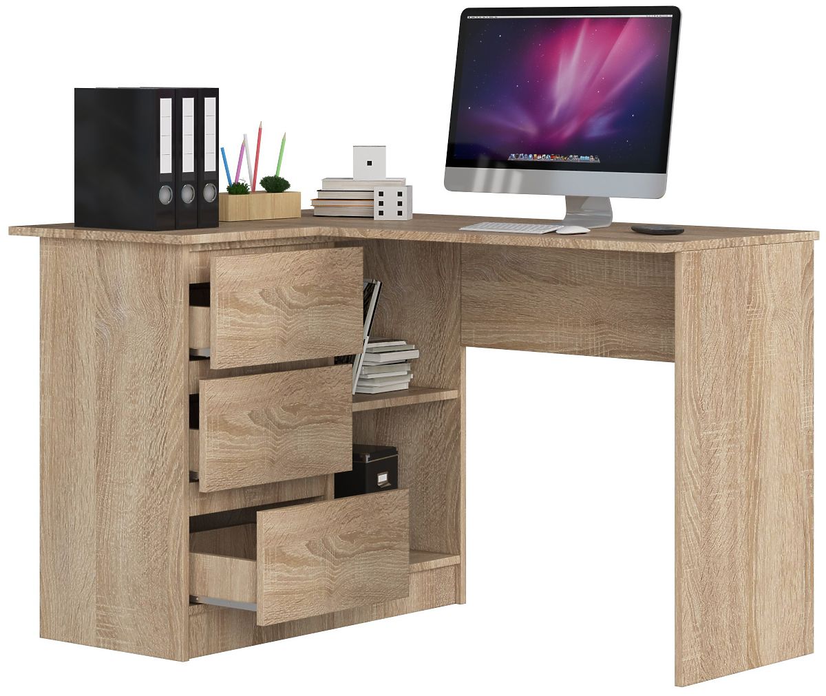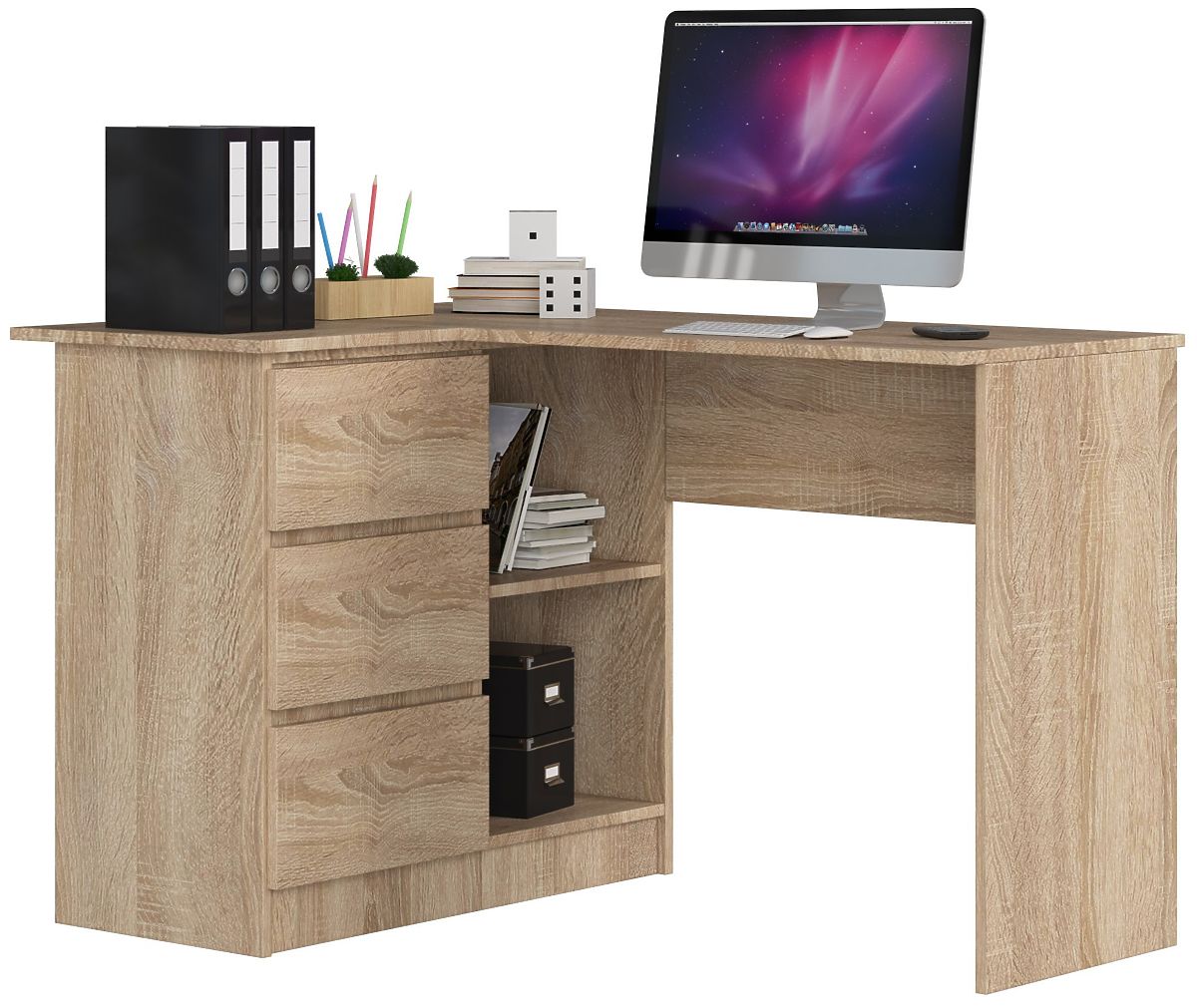 Dobre spracovaný rohový počítačový stôl je vyrobený z kvalitných materiálov a nielenže vyzerá skvele, ale tiež zaisťuje solídnosť a skvelý vzhľad po mnoho rokov.