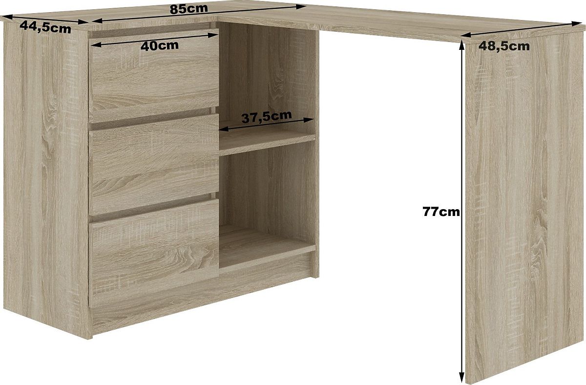 Rohový písací stôl s tromi zásuvkami v kombinácii dub sonoma a biela. .. viac