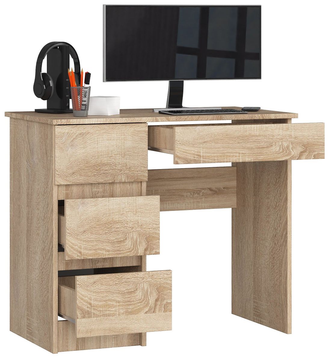 Ľavostranný počítačový stôl vo farbe dub sonoma so štyrmi priestrannými zásuvkami. Perfektne sa hodí do detskej, študentskej izby, ale aj do kancelárie alebo pracovne. Stôl je súčasťou nábytkového systému CLP, je navrhnutý tak, aby ladil s ostatným nábytkom z tejto série. Vďaka tomu môžete zariadiť izbu rôznym nábytkom, ako sú regály alebo komody, ktoré budú tvarovo aj farebne ladiť. Má modernú líniu, bezúchytkové zásuvky dodávajú nábytku minimalistický šarm. Ponúka veľa úložného priestoru, pretože má až štyri zásuvky. Vďaka klasickému vzhľadu má stôl univerzálny charakter a nikdy nevyjde z módy. Konštrukcia stola umožňuje pohodlné a ergonomické používanie počítača.