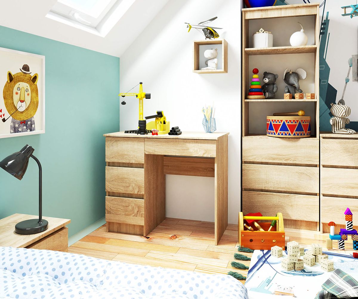 Písací stôl so štyrmi zásuvkami určený pre mládež.