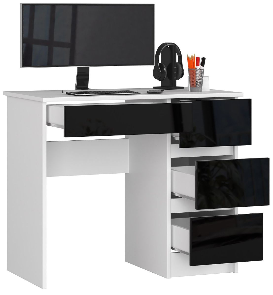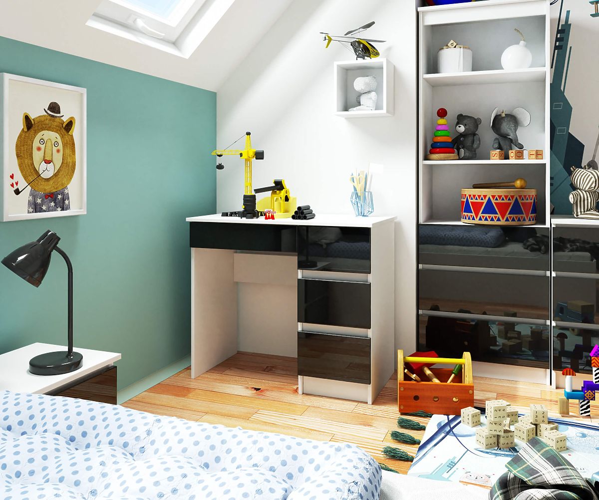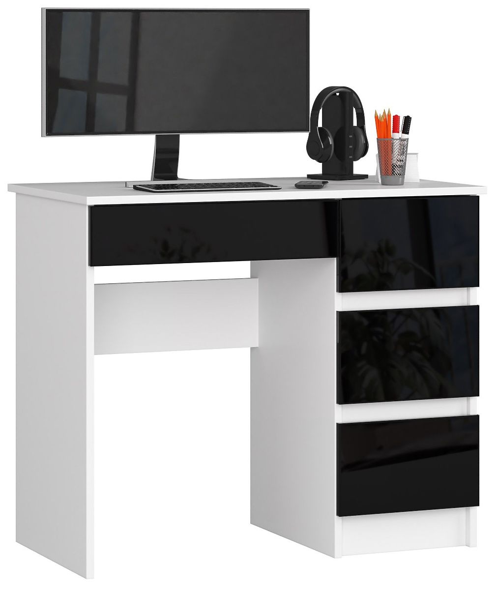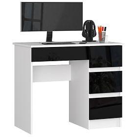 Čierna a biela sú dve nadčasové farby, ktoré sa skvele hodia nielen k sebe navzájom, ale aj k akýmkoľvek iným farbám. Preto sú už roky využívané v mnohých interiérových aranžmánoch. Obzvlášť dobre sa hodia do izieb pre mládež. Prezentovaný model A-7 90 cm (pravý) je stôl malých rozmerov, ktorý kombinuje biely korpus a čierne lesklé čelné plochy. Zaujímavá kompozícia určite osloví milovníkov minimalizmu, univerzálnych farieb a jednoduchých tvarov.