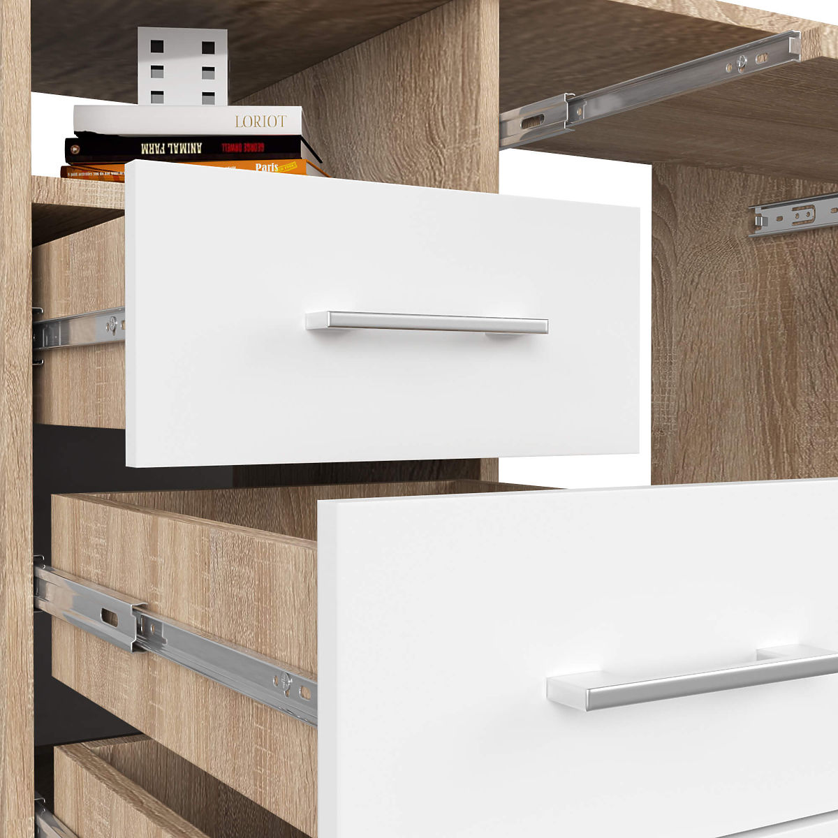 Pohodlný a funkčný stôl ANA vo farbe sonoma/biela sa skvele hodí do každej obytnej miestnosti určenej na prácu alebo štúdium – v kancelárii, detskej a mládežníckej izbe. Môže tiež doplniť vybavenie spálne alebo obývacej izby, ak je potrebné v týchto miestnostiach zorganizovať ďalšie počítačové pracovisko. Skvele sa hodí aj do kancelárie.