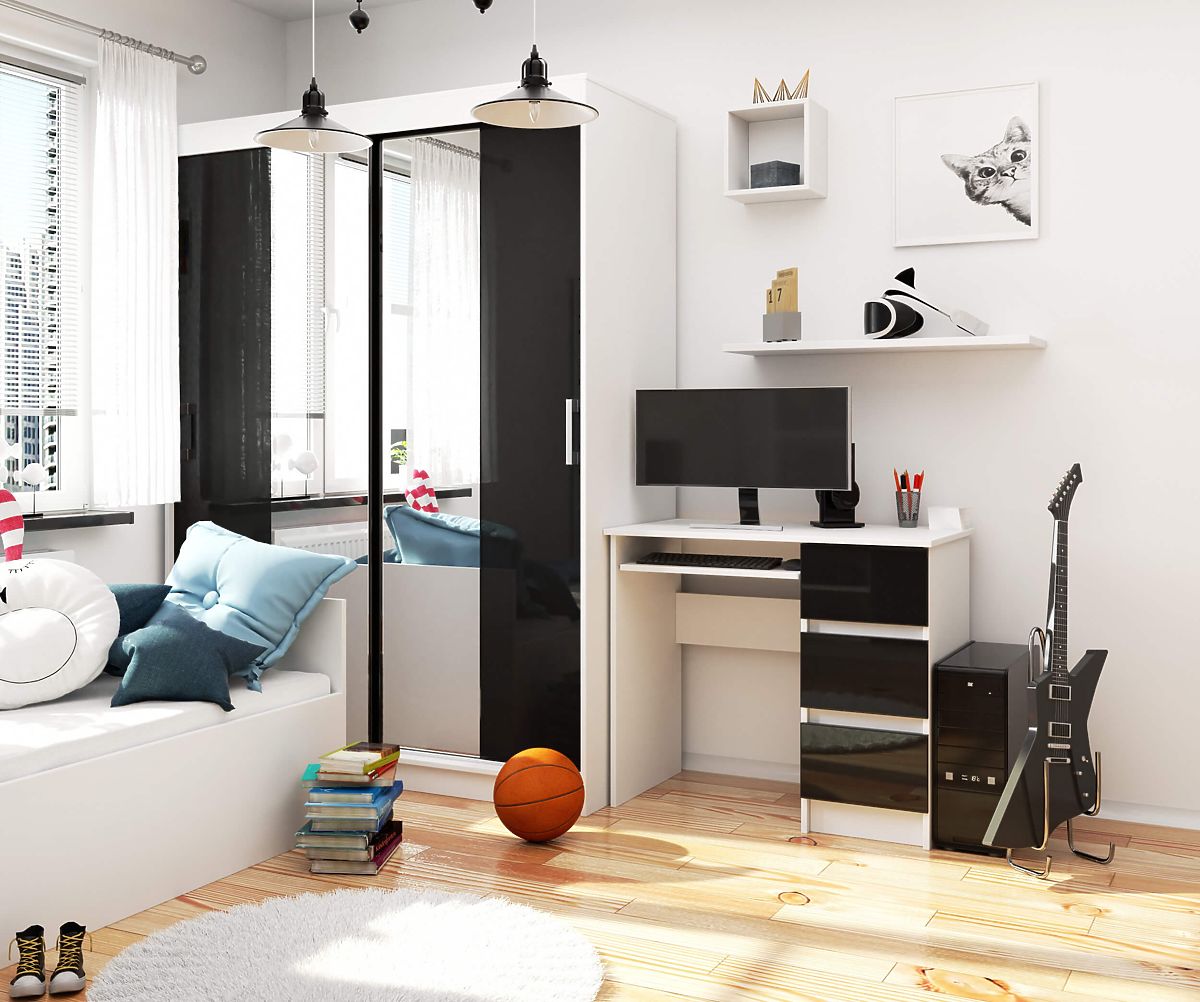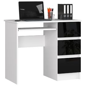 Počítačový stôl A-6 bielo-čierny sa dokonale hodí ako do izby pre mládež alebo deti, tak aj do spálne, kde je vyhradené miesto na prácu. Môže byť tiež vybavením pre dištančné učenie v obývacej izbe. Skvele sa hodí aj do malých kancelárskych priestorov, kde dominuje moderný, ba dokonca minimalistický dizajn.