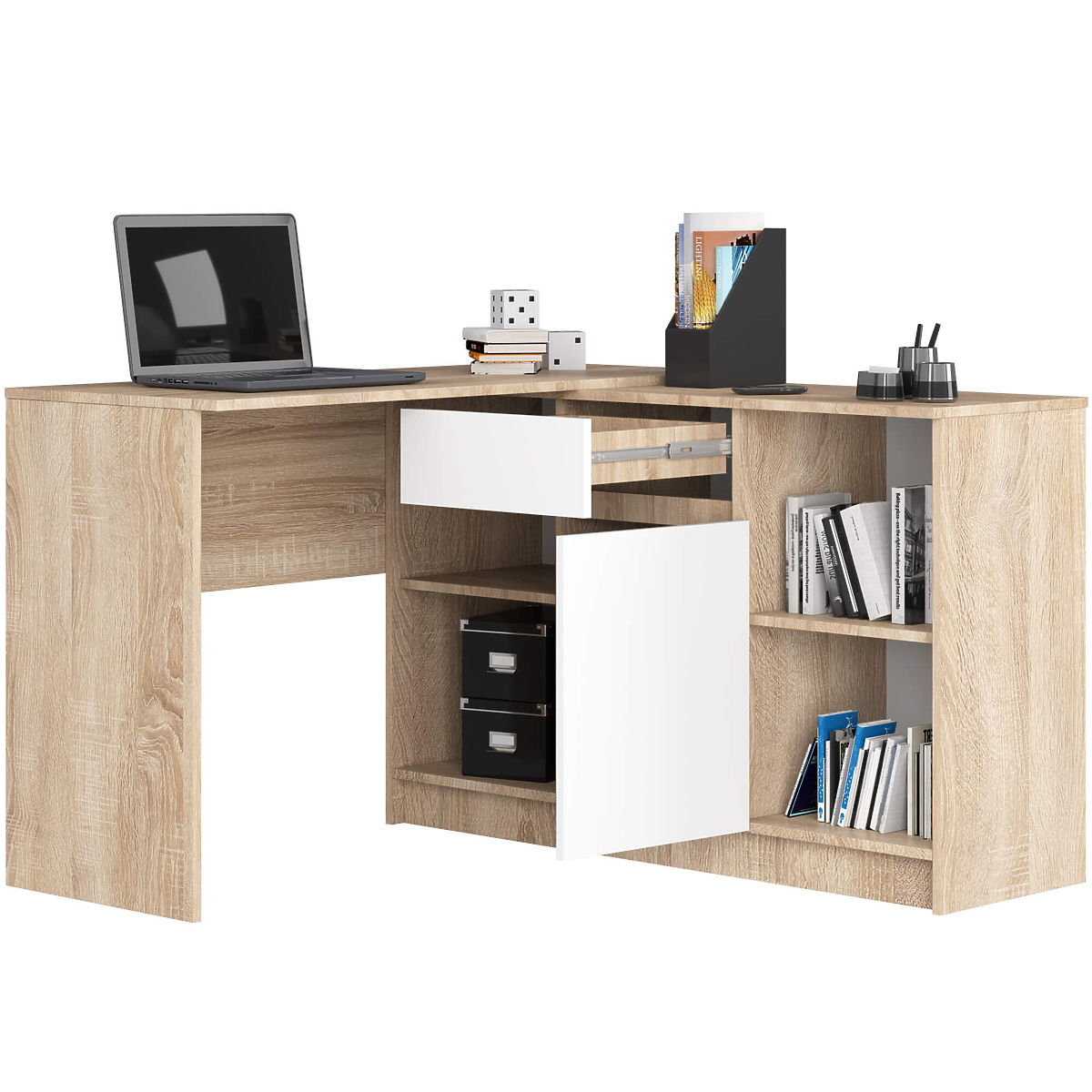 Súprava B-17 komoda a písací stôl je mimoriadne funkčná. Jeho konštrukcia umožňuje montáž ako pravostrannú, tak ľavostrannú. Vďaka tomu ho možno prispôsobiť priestoru, ktorý máte k dispozícii. Súprava bude vhodná do kancelárie, vrátane domácej, alebo do študentskej izby. Spojenie stola a komody do celku umožňuje plnšie využiť priestor. Police pojmú šanóny, kancelárske a písacie potreby alebo knihy. Je tu tiež zásuvka na drobné pomôcky. Vďaka tomu bude všetko potrebné počas práce alebo štúdia na dosah ruky.
