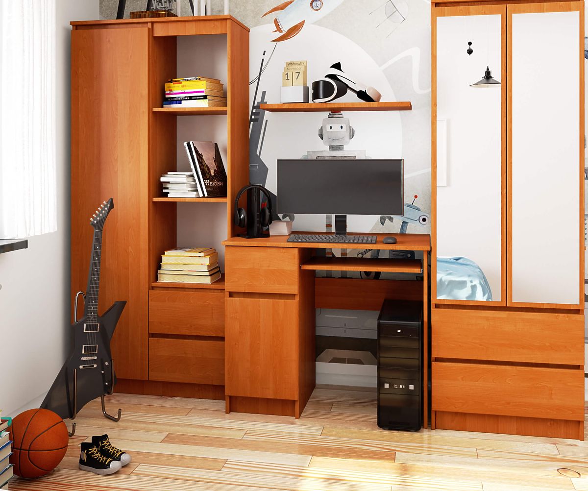 Stôl Piksel je malý stôl s veľkým množstvom miesta na najpotrebnejšie veci do školy. Vďaka dvierkam pojme množstvo zošitov a kníh. Stôl má dĺžku 90 cm a skvele sa hodí do malých a stredných miestností.