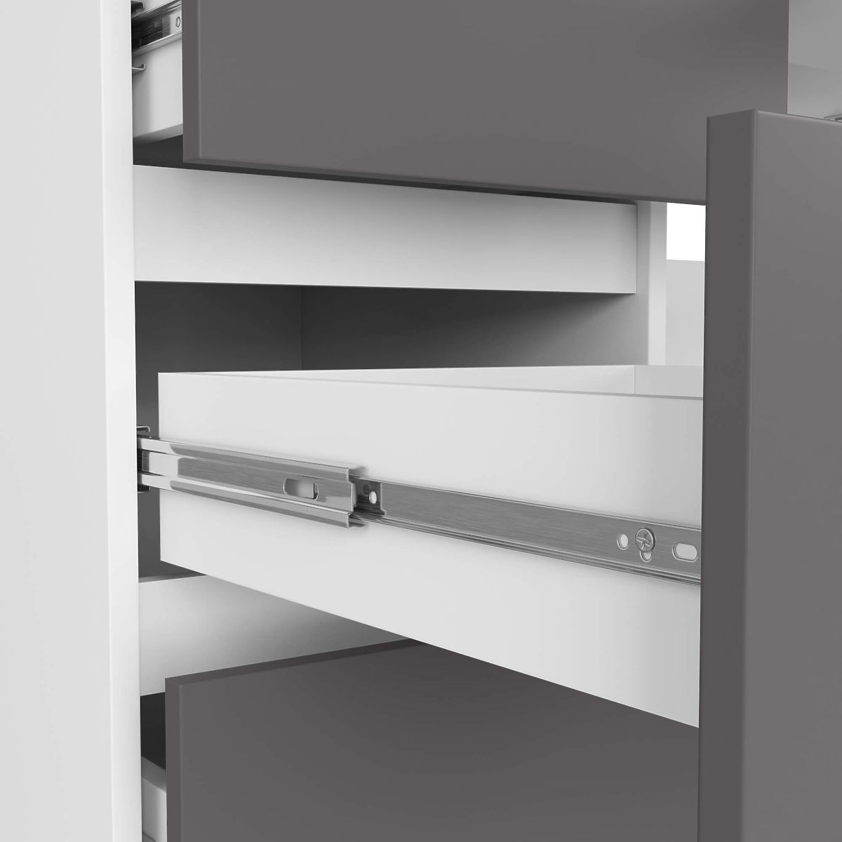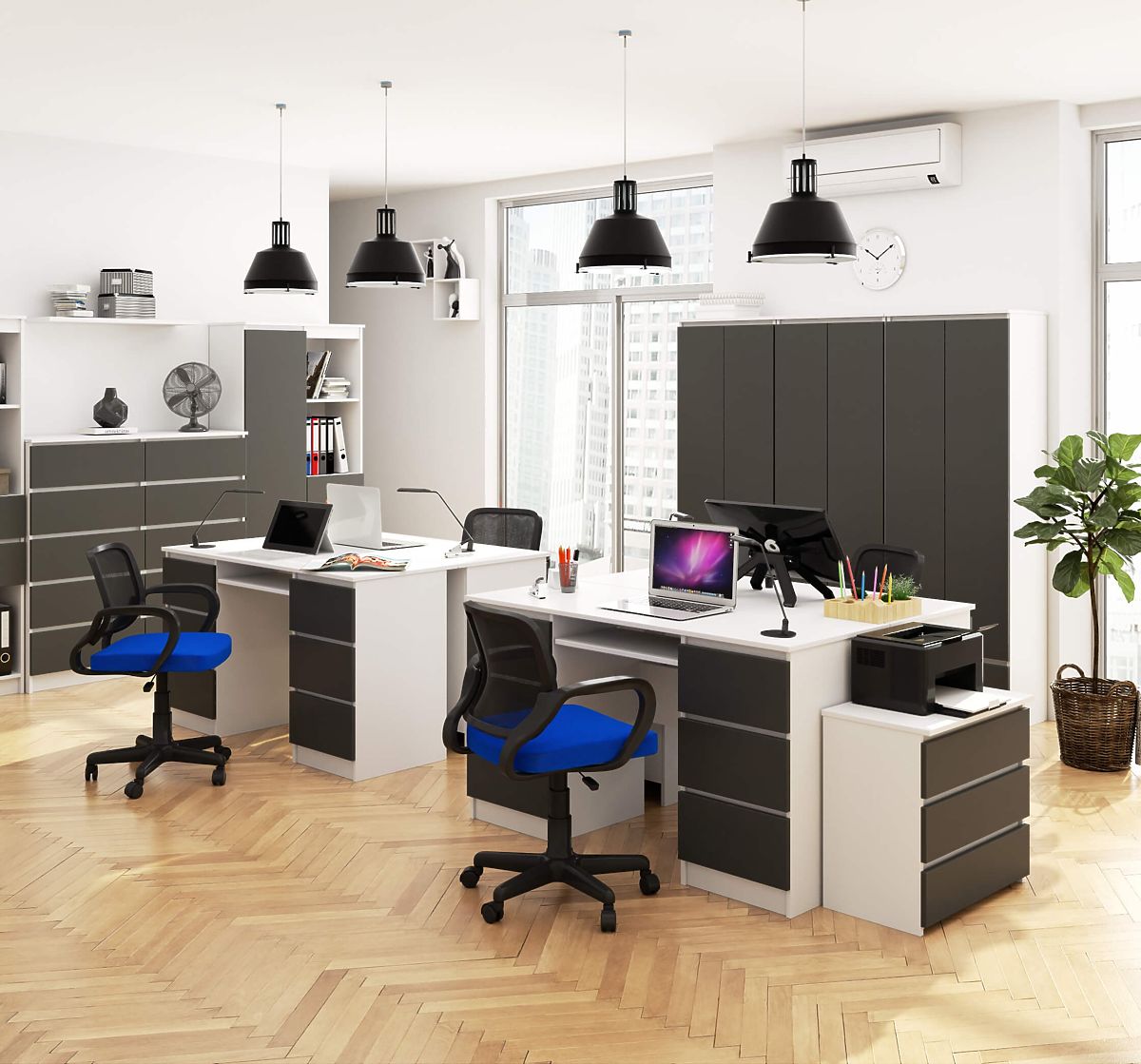 Či už pracujete v kancelárii alebo na diaľku, trávite pri stole aspoň niekoľko hodín denne. Dobre viete, že výber tohto nábytku výrazne ovplyvňuje pohodlie vašej práce. V tejto úlohe sa skvele osvedčí počítačový stôl A-11. Má až 6 priestranných zásuviek s hĺbkou 34,5 cm, do ktorých ľahko uložíte všetky dokumenty a vybavenie. Stôl má tiež výsuvnú policu, na ktorú pohodlne umiestnite klávesnicu alebo schováte najdôležitejšie poznámky. Klasická kombinácia bielej a grafitovo sivej bude skvele ladiť s jednoduchými, elegantnými kanceláriami.