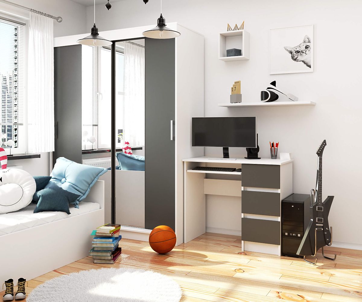 Lukafurniture.sk » Nábytok / Písacie stoly / Počítačový stôl A-6 90 cm pravý - biely-grafit sivý - 3 zásuvky