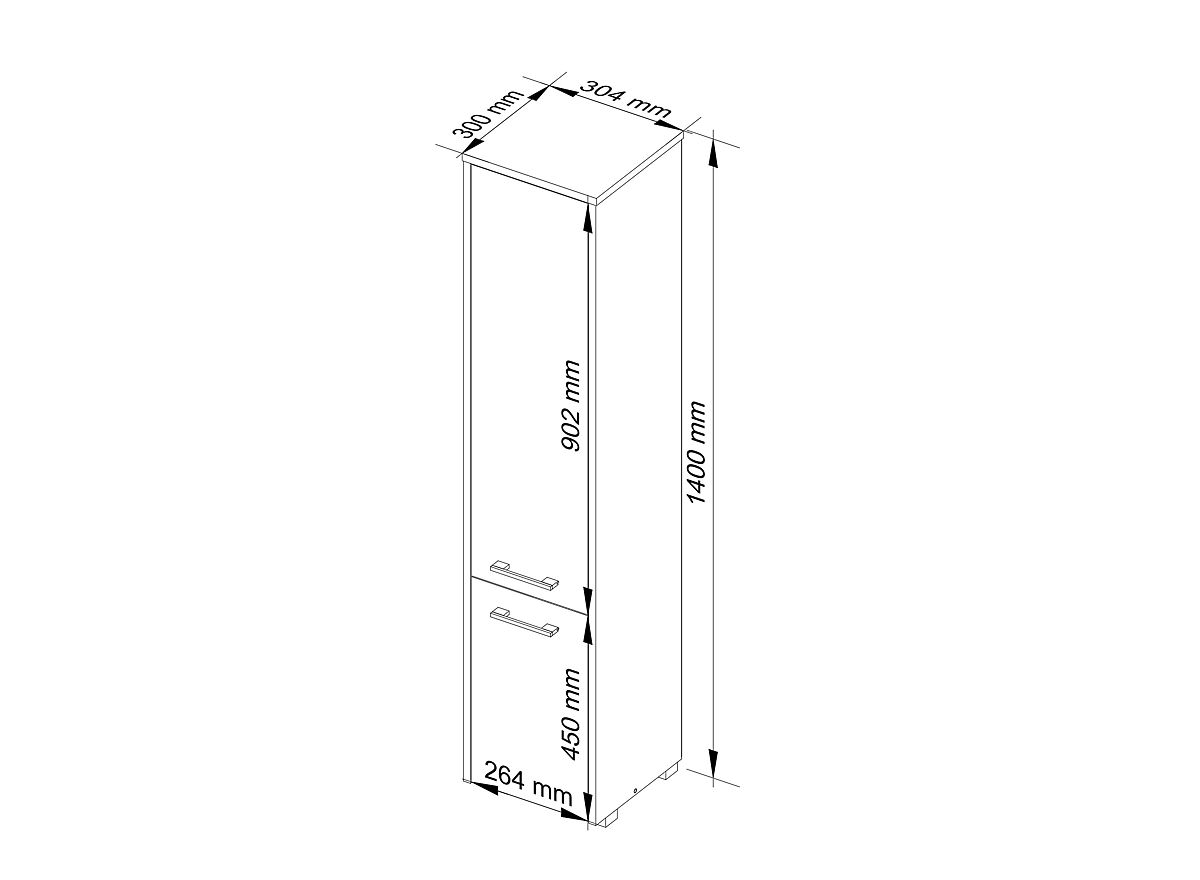 SKRINKA VYSOKÁ KÚPEĽŇOVÁ FIN 2 DVERE SONOMA Vyrobená z laminovanej dosky 16 mm odolnej proti oderu.