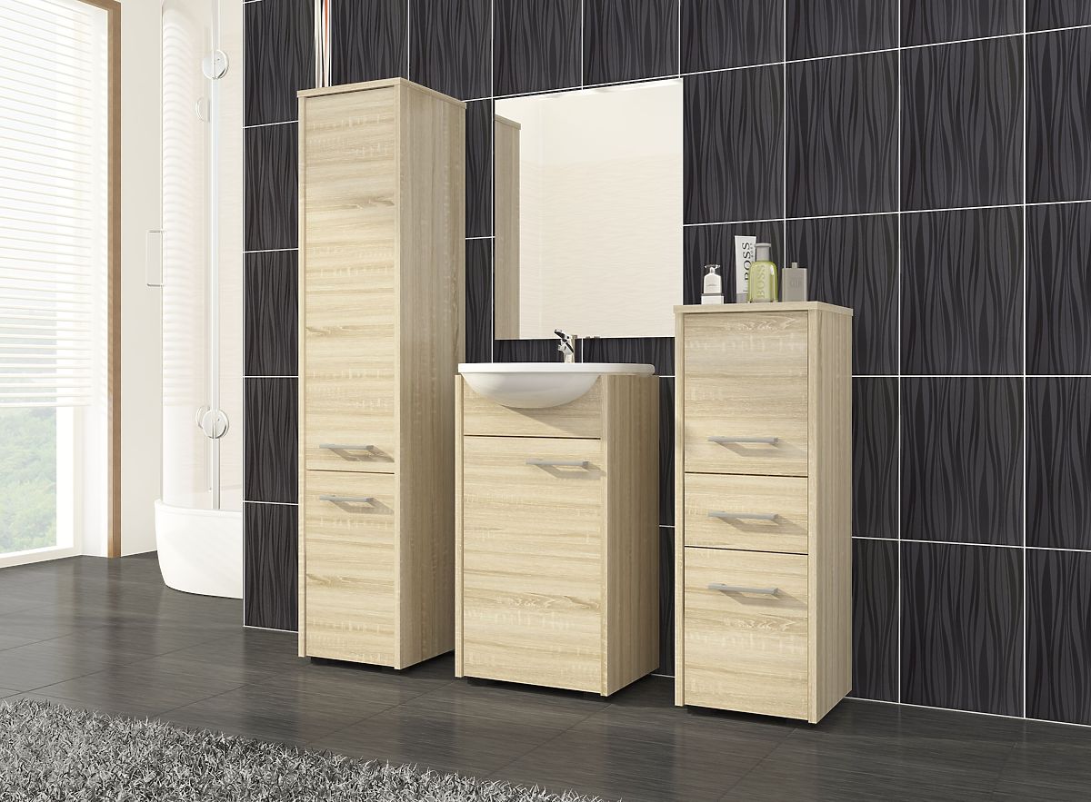 Lukafurniture.sk » Kúpeľňa a WC / Kúpeľňové skrinky / VYSOKÁ KÚPEĽŇOVÁ SKRINKA FIN 2 DVERE DUB SONOMA