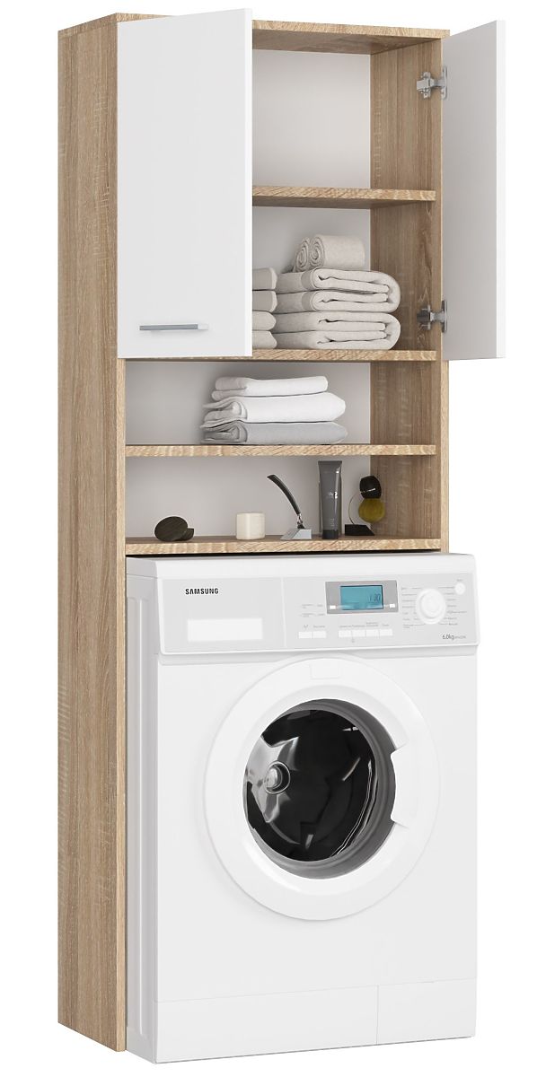 Lukafurniture.sk » Kúpeľňa a WC / Kúpeľňové skrinky / KÚPEĽŇOVÝ REGÁL FIN STĹP 2D PRÁČKA SONOMA - BIELA