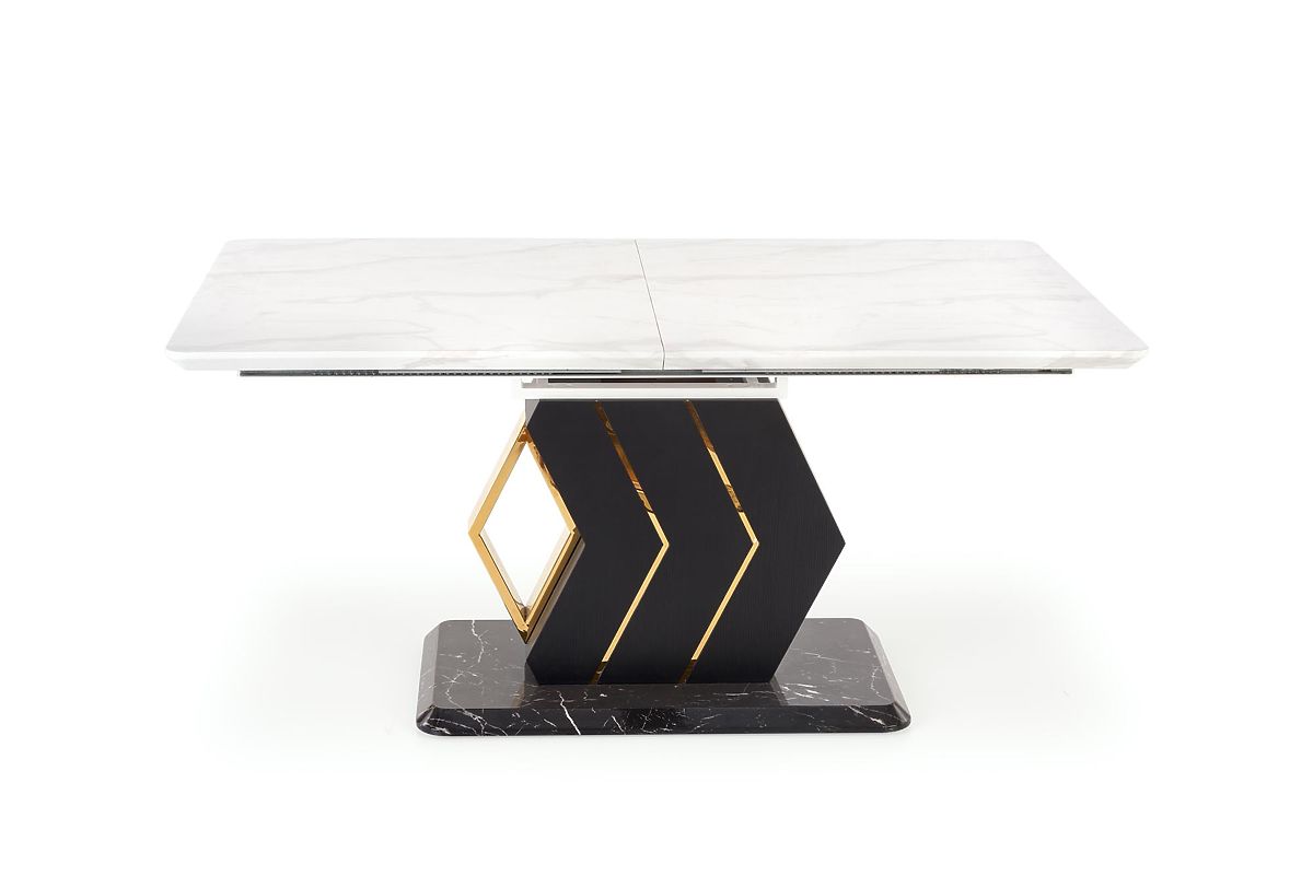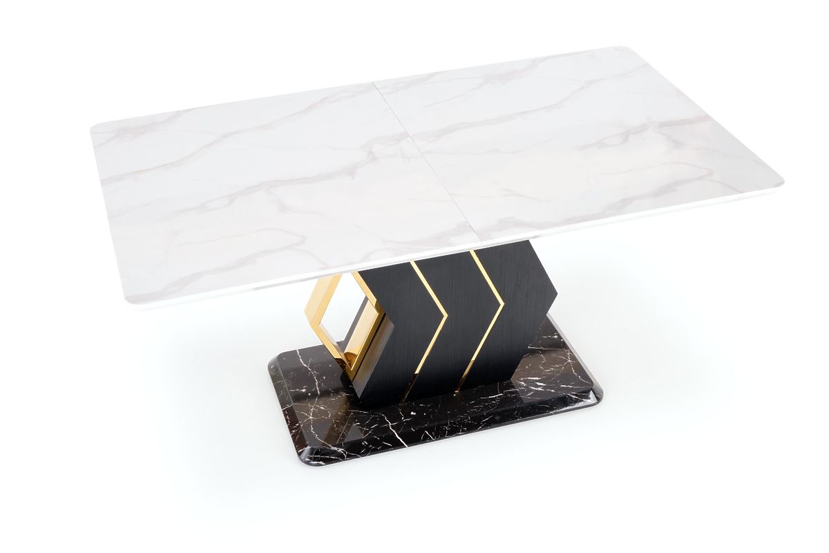 Lukafurniture.sk » Jedáleň a kuchyne / Jedálenský stoly / VINCENZO rozkladací stôl doska: biely mramor, noha čierna/zlatá (3p=1ks)