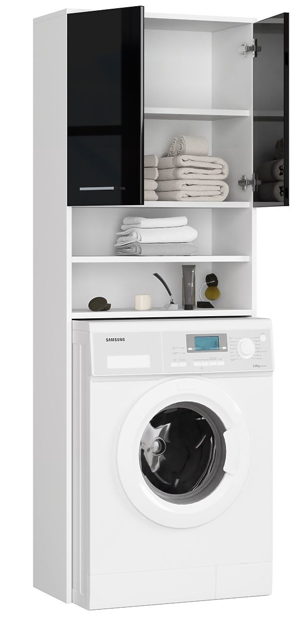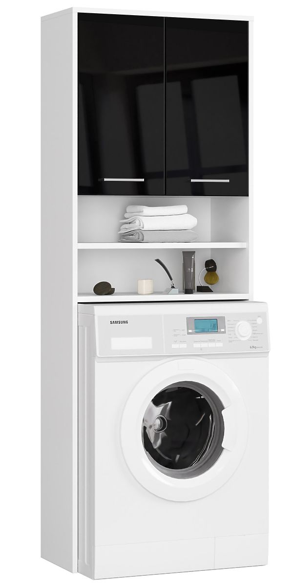 Lukafurniture.sk » Kúpeľňa a WC / Kúpeľňové skrinky / KÚPEĽŇOVÝ REGÁL FIN NAD PRÁČKU BIELY / ČIERNY LESK