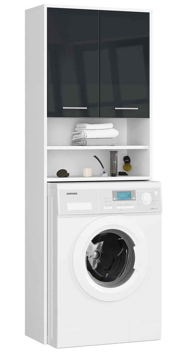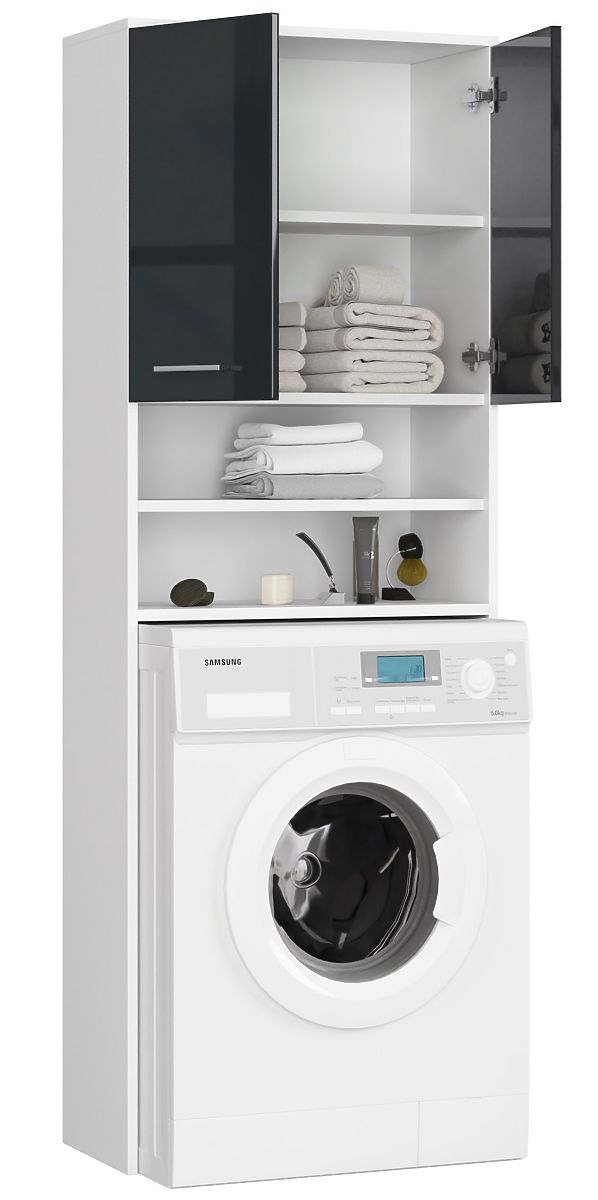 Lukafurniture.sk » Kúpeľňa a WC / Kúpeľňové skrinky / KÚPEĽŇOVÝ REGÁL FIN NAD PRÁČKU BIELY / GRAFIT LESK