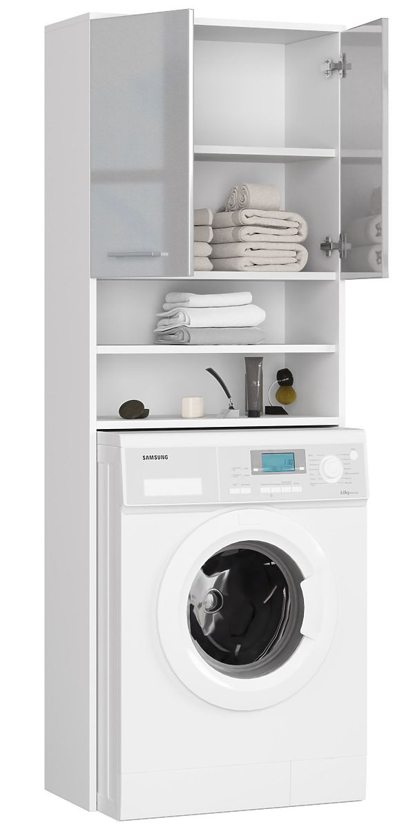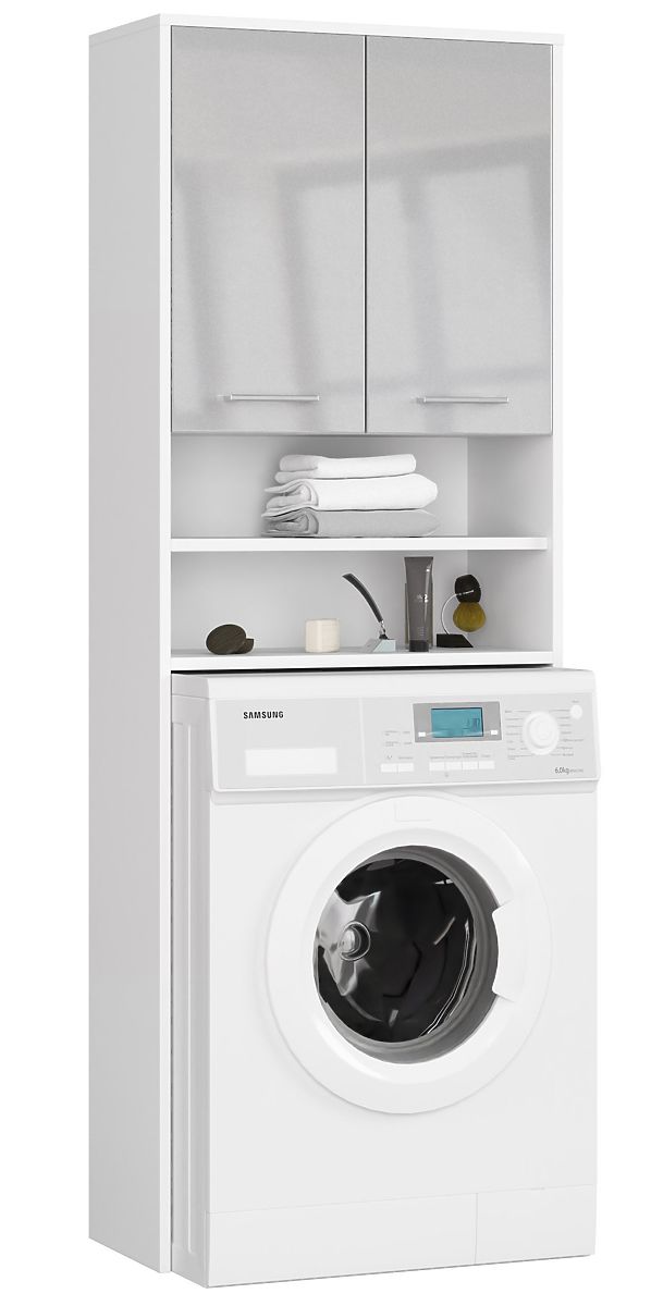Lukafurniture.sk » Kúpeľňa a WC / Kúpeľňové skrinky / KÚPEĽŇOVÝ REGÁL FIN NAD PRÁČKU BIELY / METALICKÝ LESK