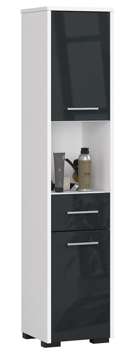 Elegantný kúpeľňový stĺp s lesklými grafitovými čelnými plochami. .. viac