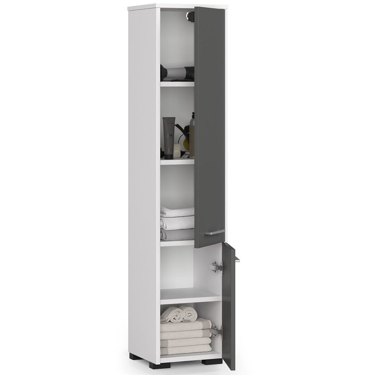 Kúpeľňová skrinka s 2 dverami a 5 policami, biela a grafitová šedá. .. viac