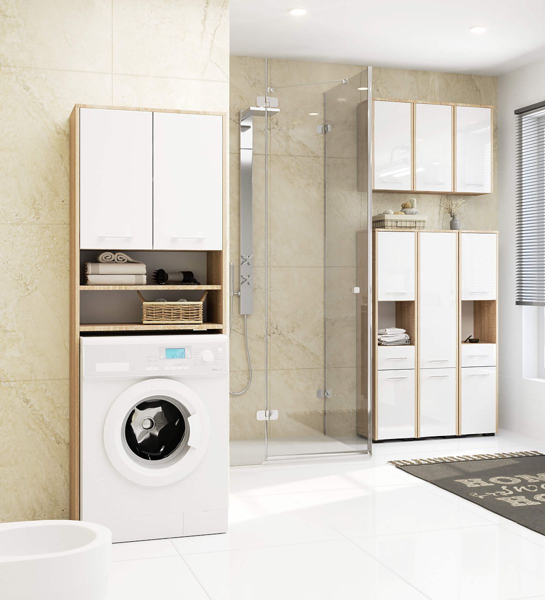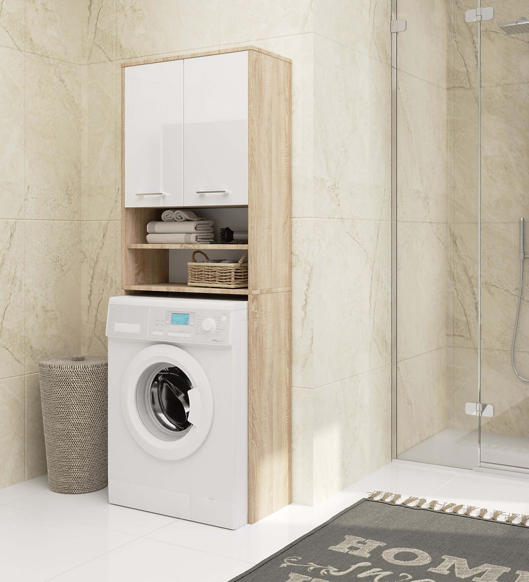 Lukafurniture.sk » Kúpeľňa a WC / Kúpeľňové skrinky / KÚPEĽŇOVÝ REGÁL FIN NAD PRÁČKU DUB SONOMA / BIELY LESK