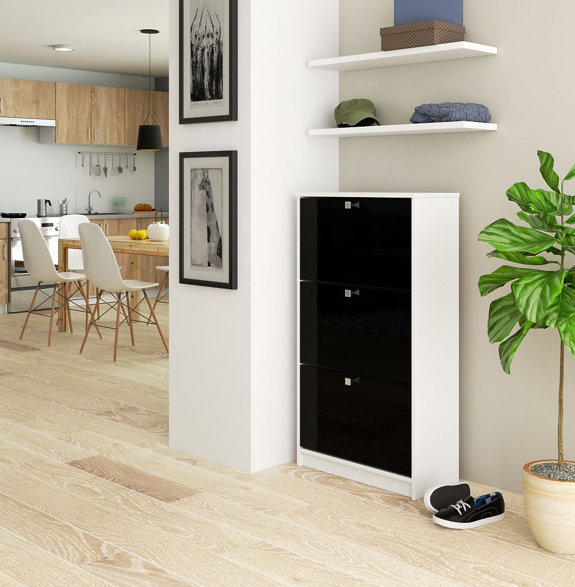 Botník s tromi výklopnými dverami a vysokým leskom. .. viac