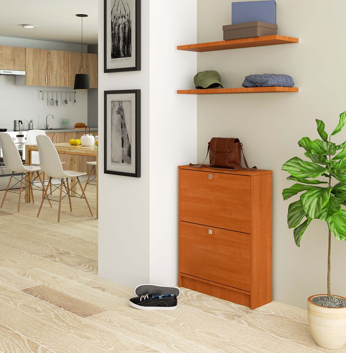 Vysoký 80 centimetrov a široký 60 centimetrov botník je vyrobený z odolnej laminovanej dosky, ktorá je mimoriadne odolná proti poškriabaniu. Je to praktické riešenie, ktoré ocenia ľudia dbajúci na poriadok a chcúci usporiadať svoju obuv. Botník je dostupný v našom internetovom obchode za veľmi výhodnú cenu. Ľahko sa udržiava v čistote, otvára sa praktickým spôsobom, elegantný botník bude skvelým doplnkom každej predsiene aj šatne.