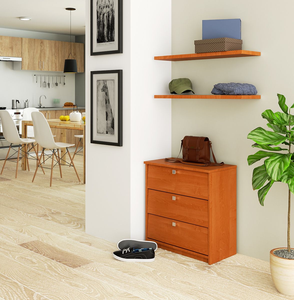 Botník s tromi výklopnými dverami a tromi policami vo farbe jelša. .. viac