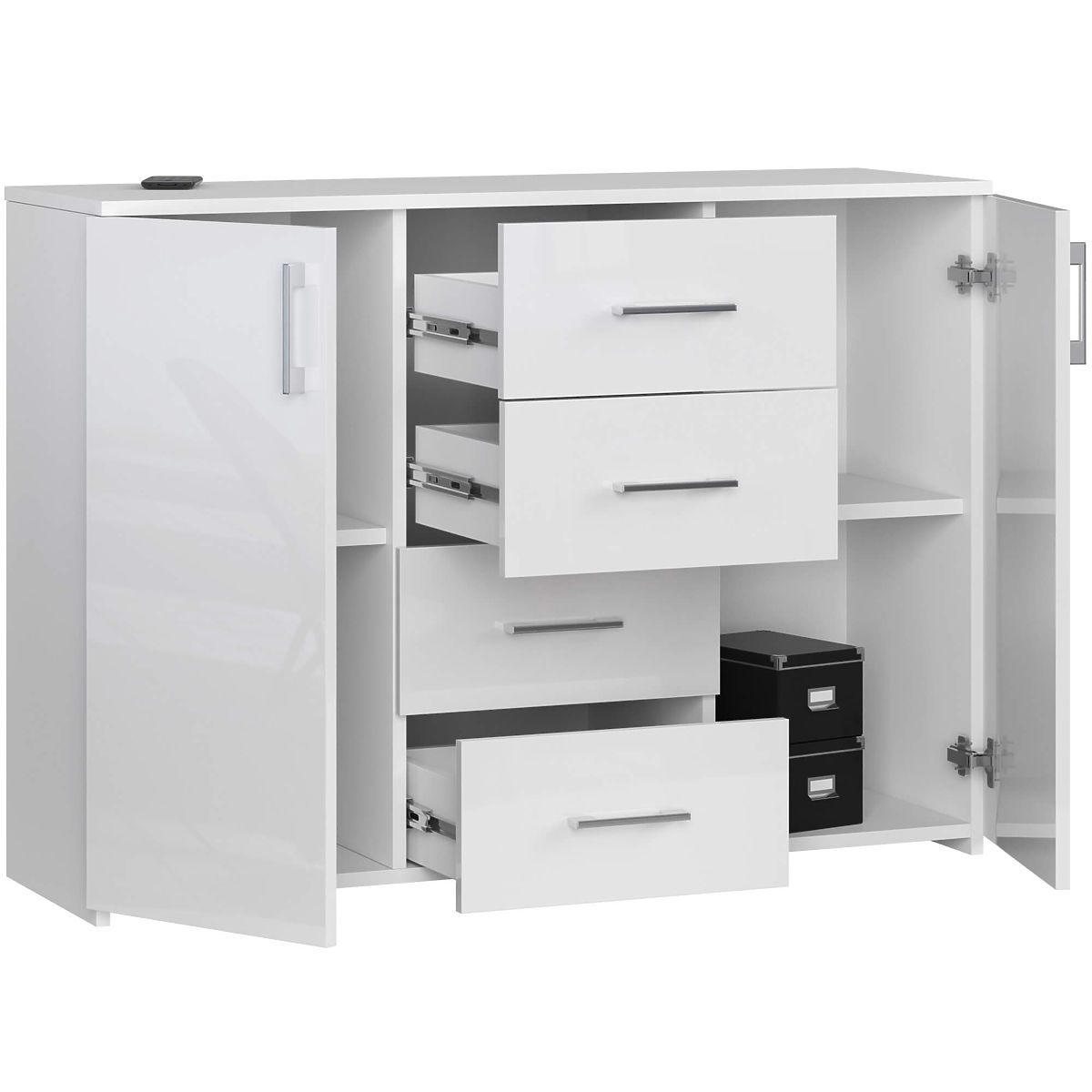 Komoda K45 s vysokým leskom a striebornými úchytmi. .. viac