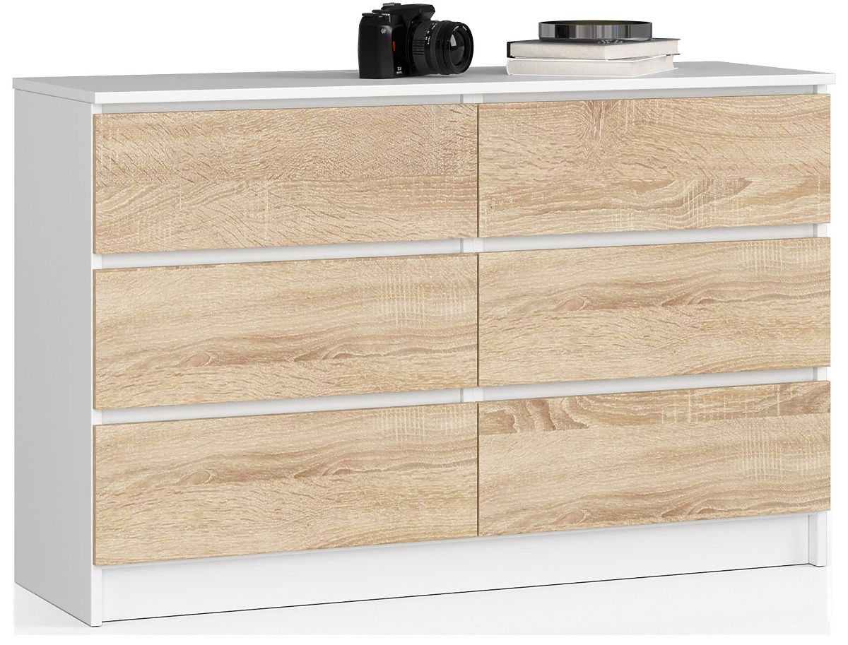 KOMODA K120 SO 6 ZÁSUVKAMI Vyrobená z laminovanej dosky 16mm odolnej proti oderu.