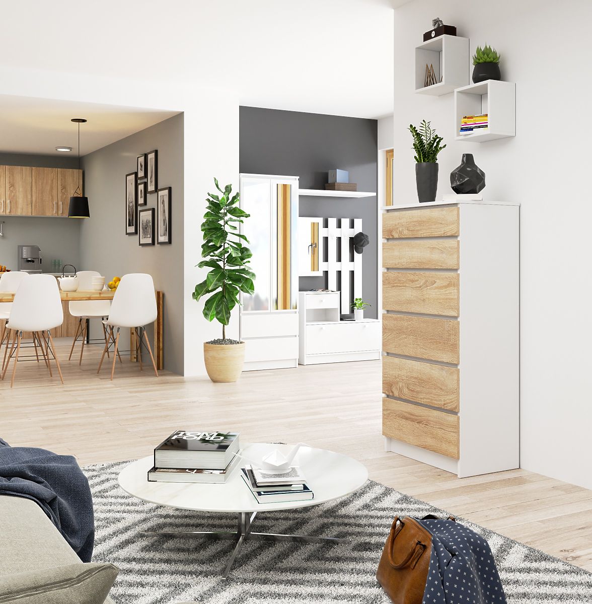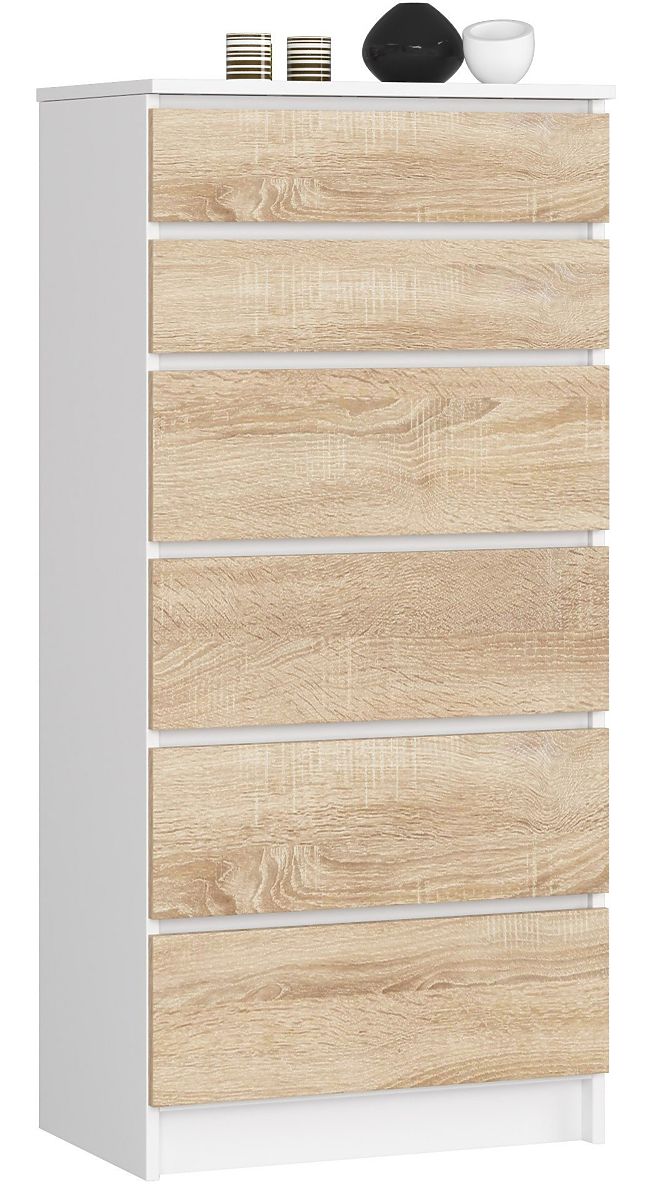 Komoda s 6 zásuvkami v bielej a dub sonoma farbe. .. viac