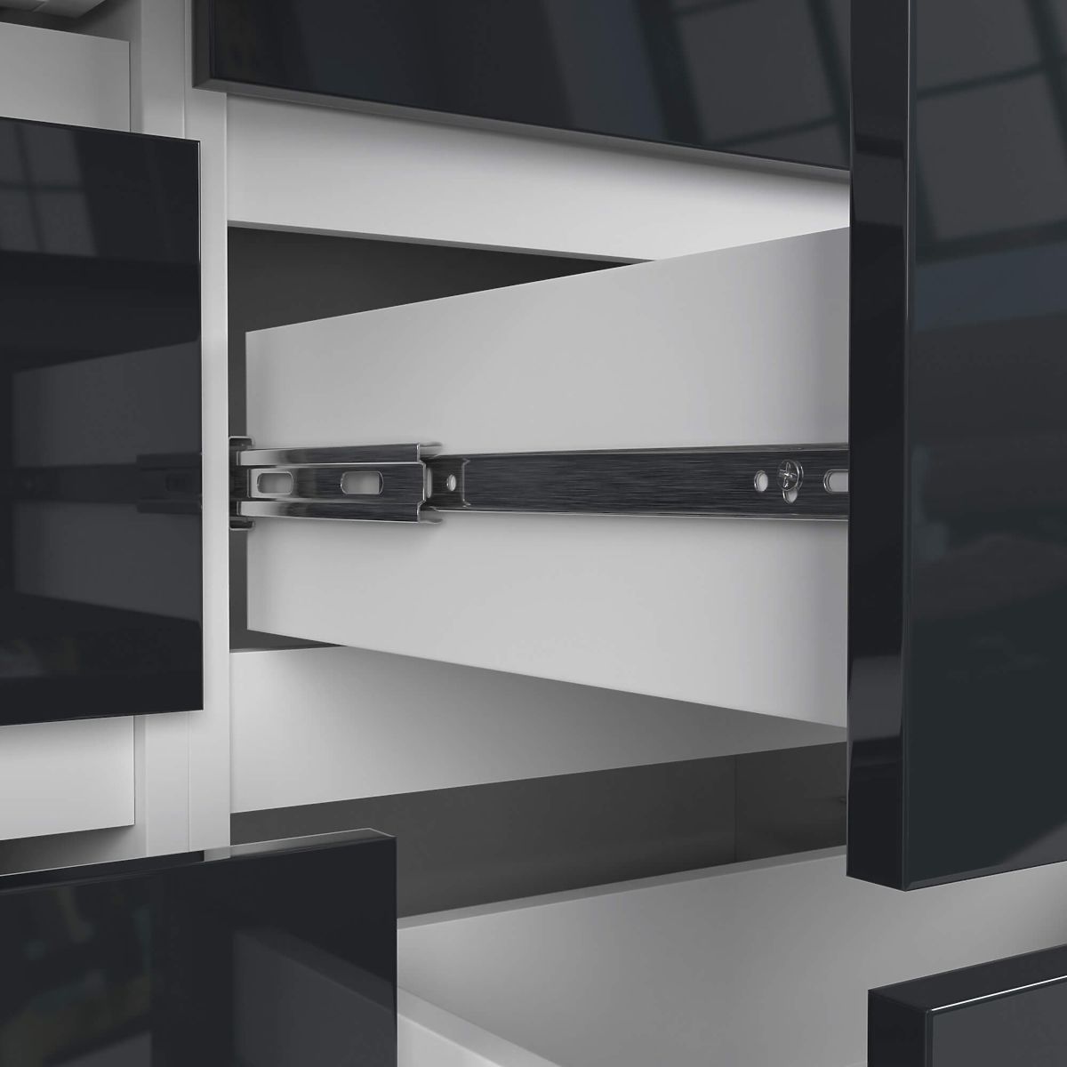 - Zásuvky sa pohybujú na kovových guľôčkových pojazdoch - Hrany sú opatrené ABS hranou zabezpečujúcou vysokú ochranu proti poškodeniu