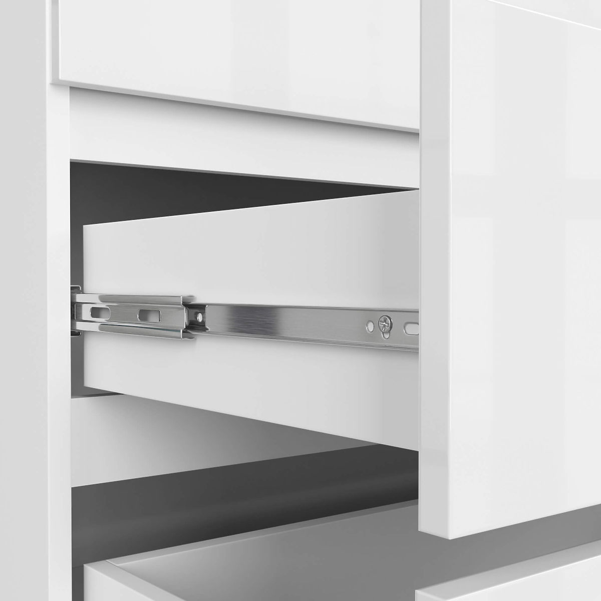 - Zásuvky sa pohybujú na kovových guľôčkových pojazdoch
